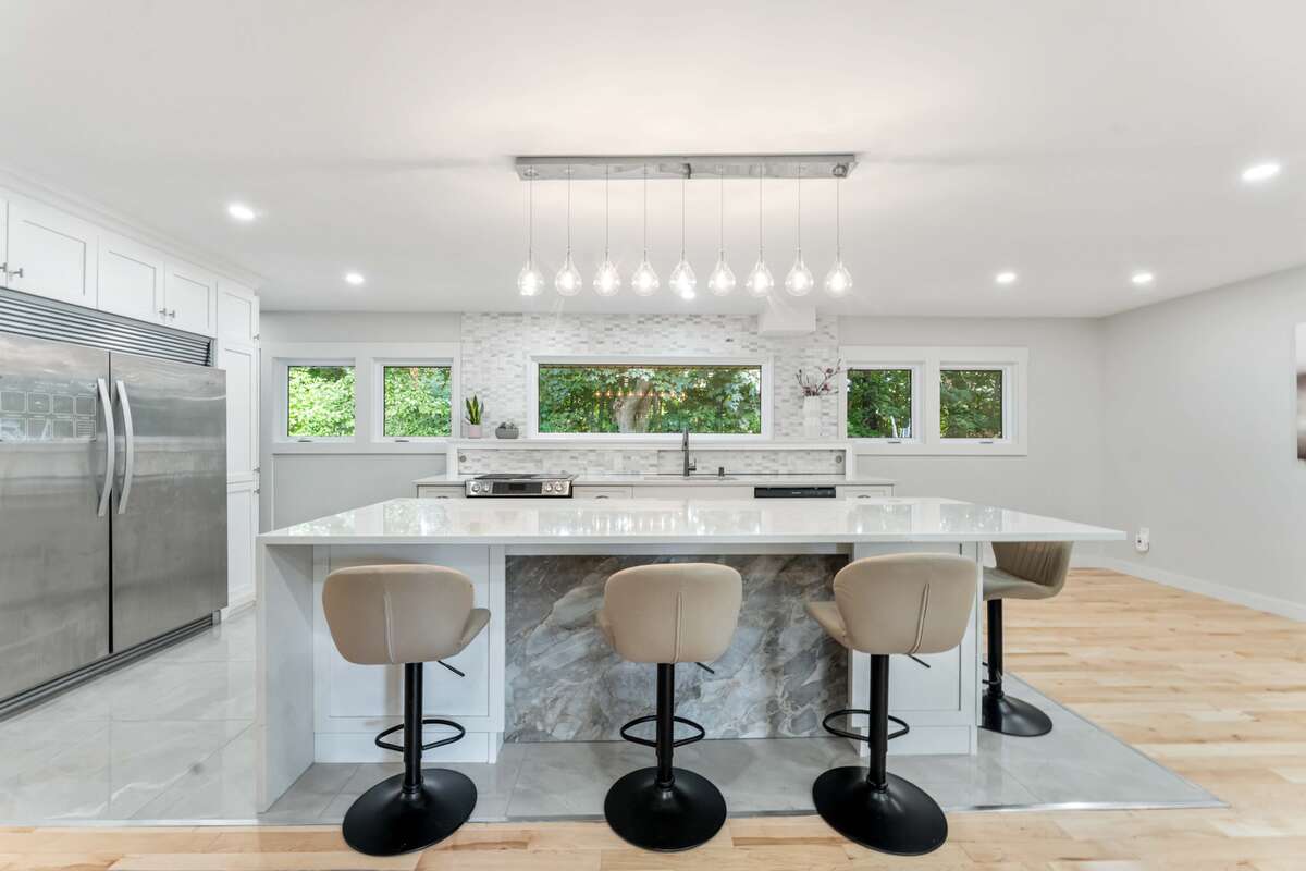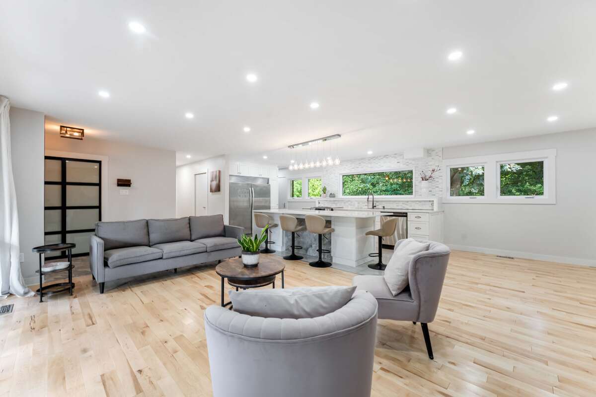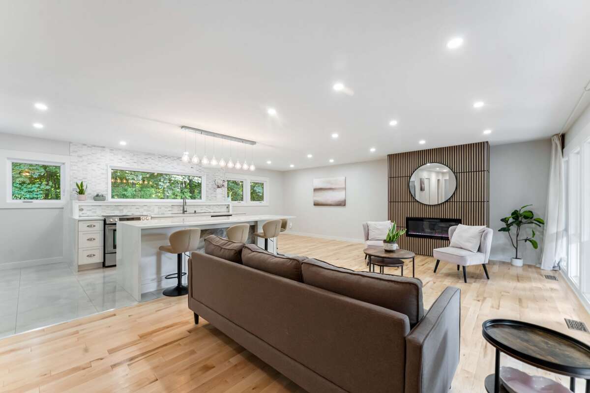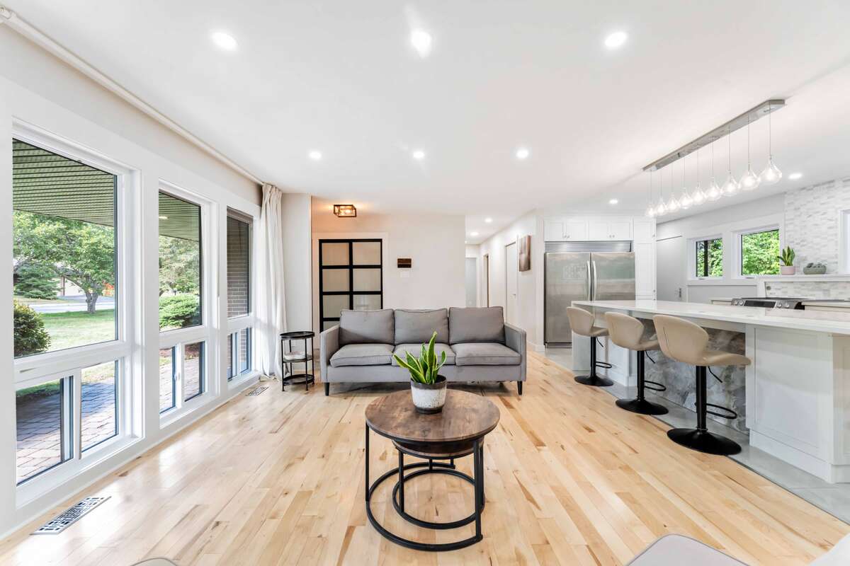 Location location location! Beautifully renovated bungalow in the heart of sought after Beaverbrook. Access from your backyard to Gow Park and Stephen Leacock Public school, one of Ottawa's top rated schools. Over 2000sf of finished space. This home features a warm open concept main floor with new maple hardwood floors, new gorgeous tile and new windows and paint throughout. A large stunning kitchen with an extraordinary picture window with a view to impress. New quartz waterfall countertops and a one of a kind 13' hidden backsplash for extra kitchen storage. The main floor includes laundry, living room with designer LED feature electric fireplace surround, gorgeous updated bathrooms and 3 bedrooms with ample closets.