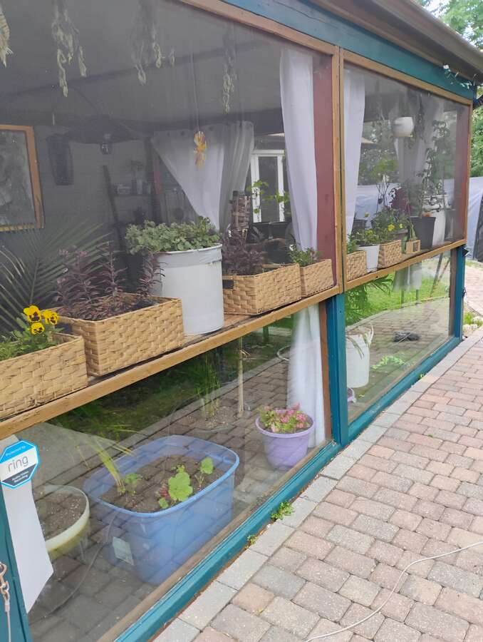 *Beautiful Backyard: Stone patio, fire pit area, and a screened-in sunroom overlooking the massive picturesque backyard. Partially fenced for privacy. Attached covered dog run off sunroom. Greenhouse off carport.