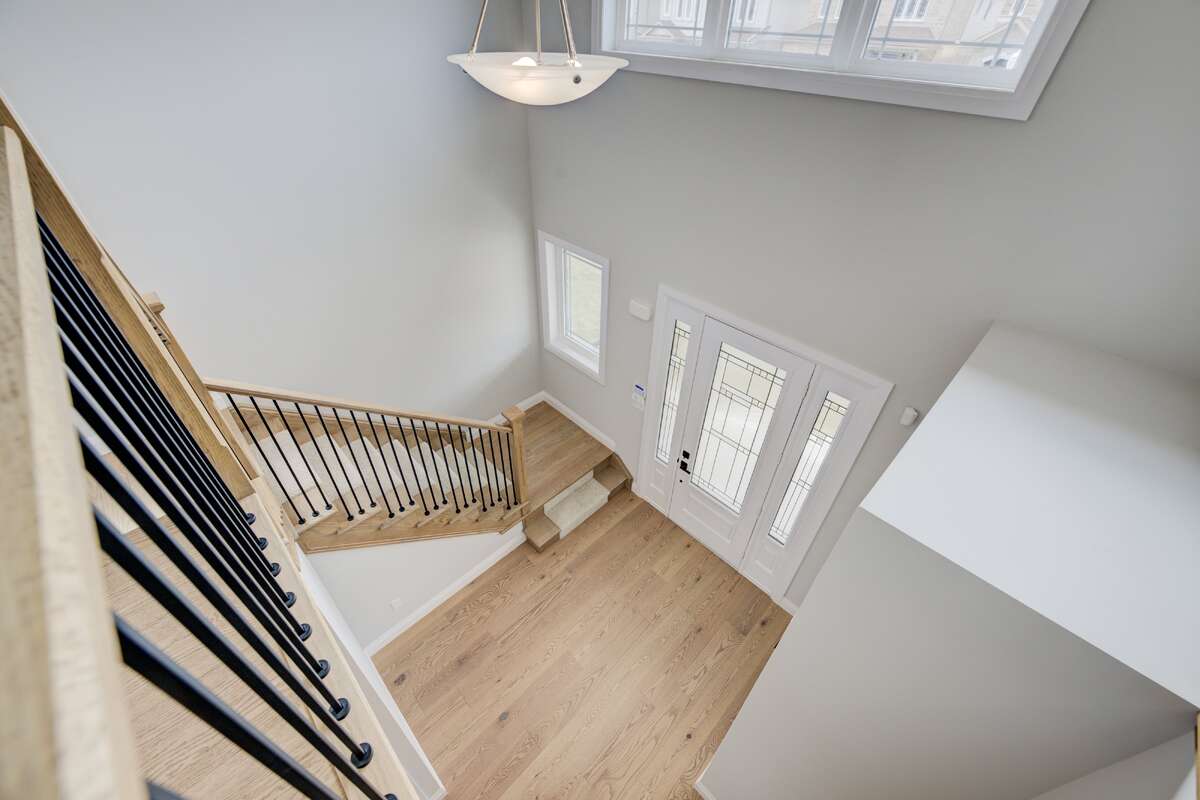 Backing onto the beautiful Grand River Valley, 329 Rivertrail Ave, Kitchener, ON offers 3,621 finished sq. ft., an attached double garage, paved driveway, rear deck, and an unfinished walk-out basement with excellent potential for additional living space. Inside, the airy foyer soars with an upper window and skylight that flood the space with natural light. The main floor (9-ft ceilings) features a family room, kitchen, dinette, dining room, den, and a three-piece bathroom. The family room is framed by large windows with valley views and includes a modern linear gas fireplace and bright recessed pot lights.