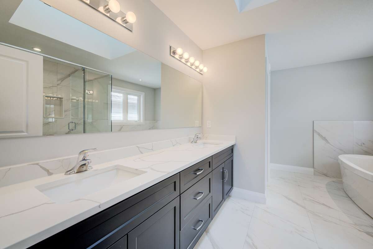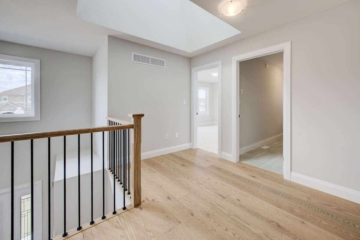 Upstairs, the primary suite boasts a coffered ceiling, a generous walk-in closet, and a spa-style ensuite with a free-standing soaker tub, tiled shower with glass surround, skylight, and a separate toilet room. Three additional bedrooms, a main bathroom with skylight, and a conveniently located laundry room (washer and dryer included) complete the upper level. With abundant space, premium finishes, and a scenic setting, this new home is finished and move-in ready. Please visit our Model Home located at 88 Grand Flats Trail in Kitchener to arrange a viewing of this home. The Model Home is open each Tuesday and Thursday from 2pm-6pm and every Saturday from 12pm-4pm.