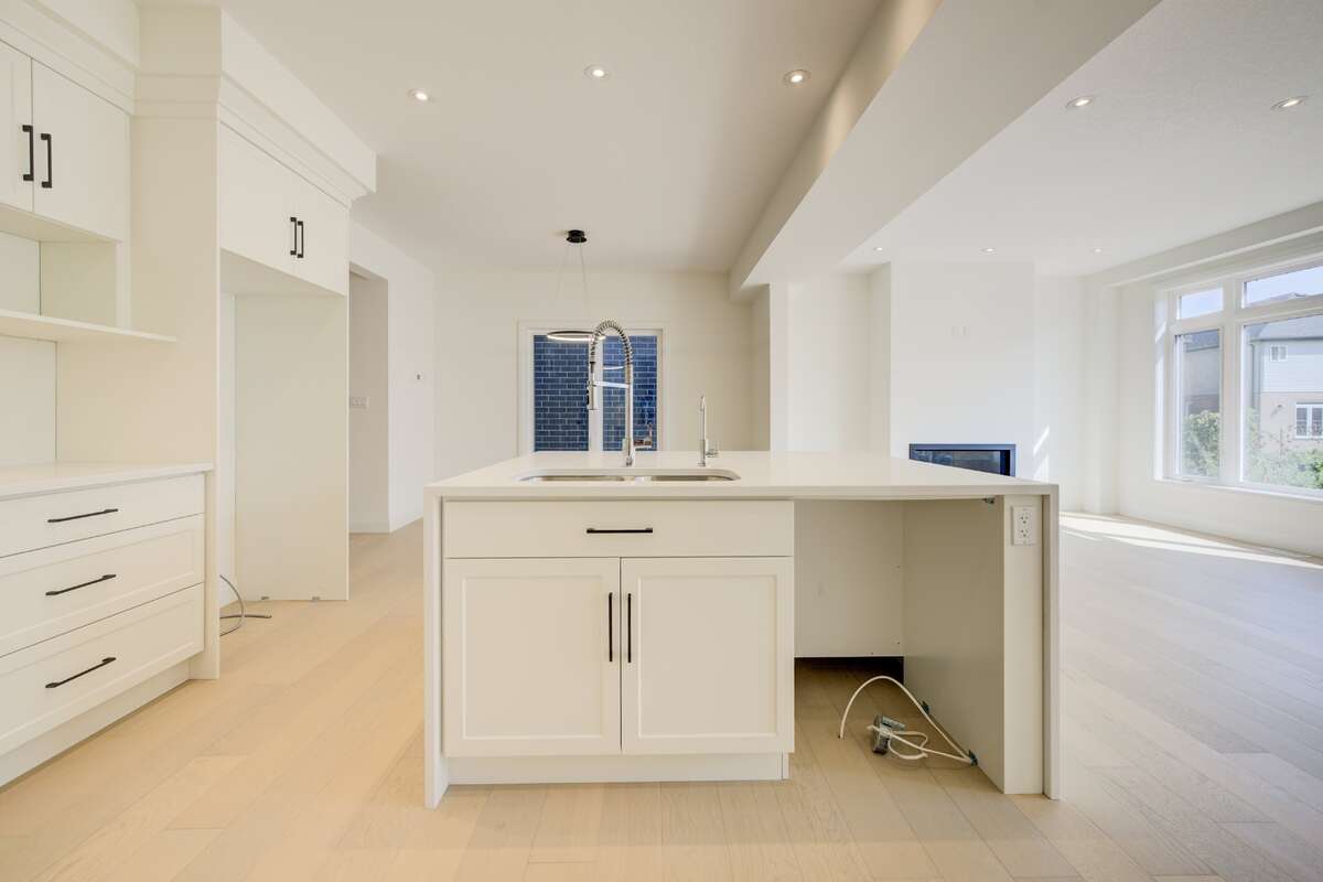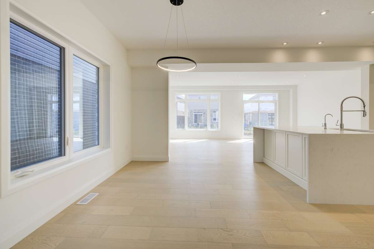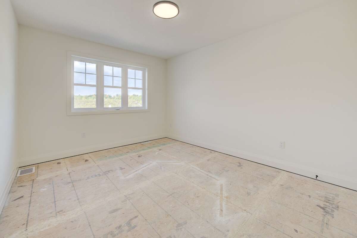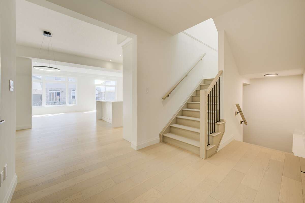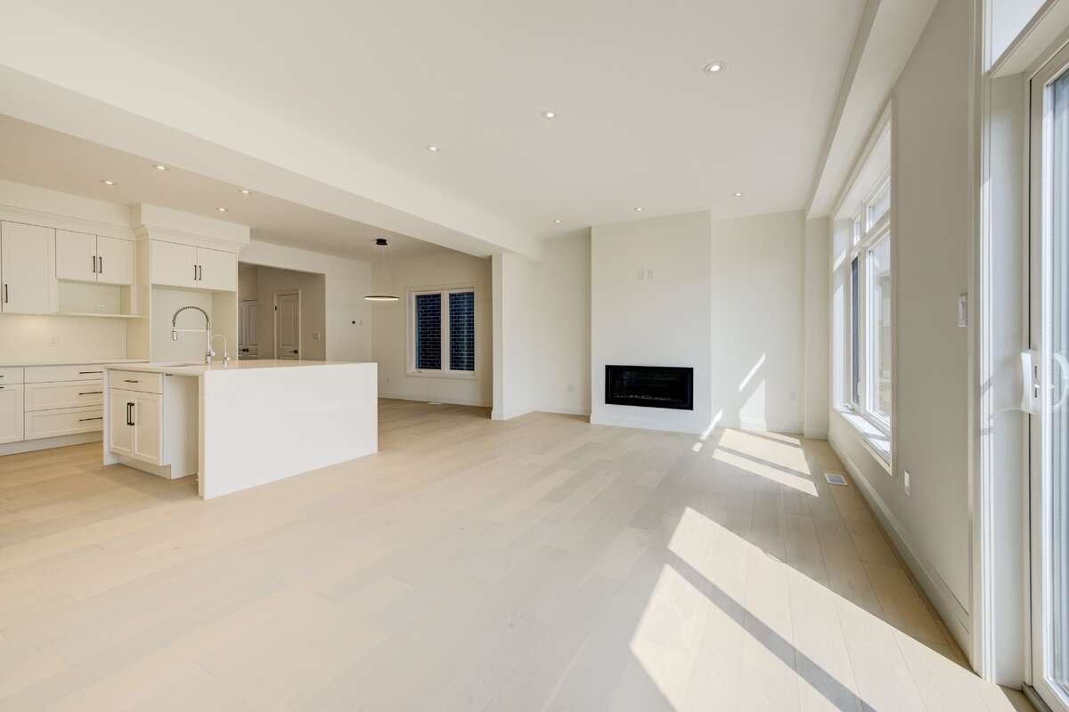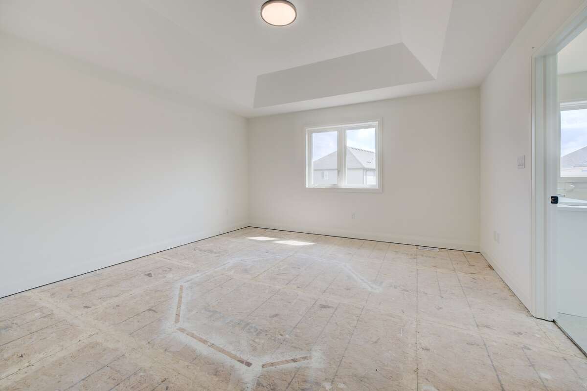 Located at 278 Rivertrail Ave in Kitchener, ON, this two-story home is 2176 finished square feet with an attached garage and a paved two vehicle-wide driveway. The upgraded stone front and entry door are a welcome introduction to the main floor open-concept design with nine-foot ceilings. The great room includes a modern linear gas fireplace, pot lights, a large window and a sliding patio door to access the rear yard. The kitchen, brightly lit with pot lights, contains upgraded white cabinetry with premium quartz countertops, a large island with a waterfall countertop, under top cabinet lighting, a walk-in pantry and dinette area. Hardwood flooring covers the main level, except for tile flooring in the powder room. An oak staircase leads upstairs, where the second floor is brightened by a skylight in the vaulted ceiling. This level includes four bedrooms, a main bathroom with two vanities and a skylight, as well as a conveniently located laundry room. The master bedroom has a coffered ceiling, a generous walk-in closet and a luxurious ensuite with a skylight, a free-standing soaker tub, a tile shower with glass door and a separate toilet room. Additional items included are air conditioning, five appliances and a chimney-style rangehood in the kitchen. This new home is move-in ready, except for second level flooring which the purchaser may select from the builder’s samples. Please visit our Model Home located at 88 Grand Flats Trail in Kitchener to arrange a viewing of this home. The Model Home is open each Tuesday and Thursday from 2pm-6pm and every Saturday from 12pm-4pm.