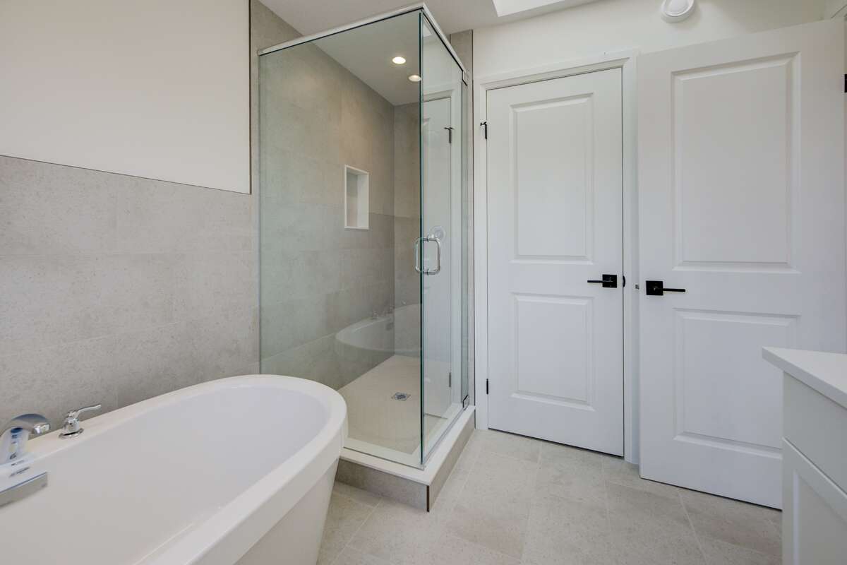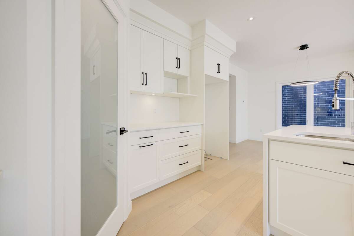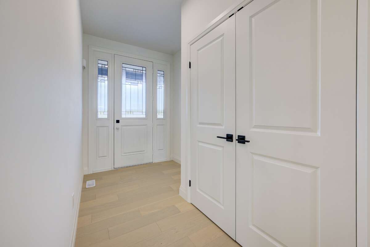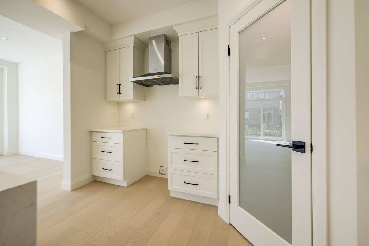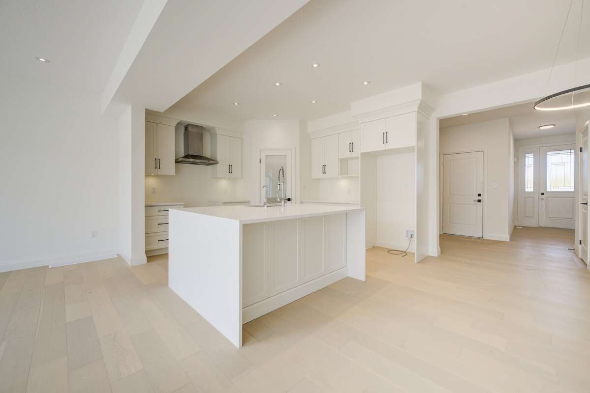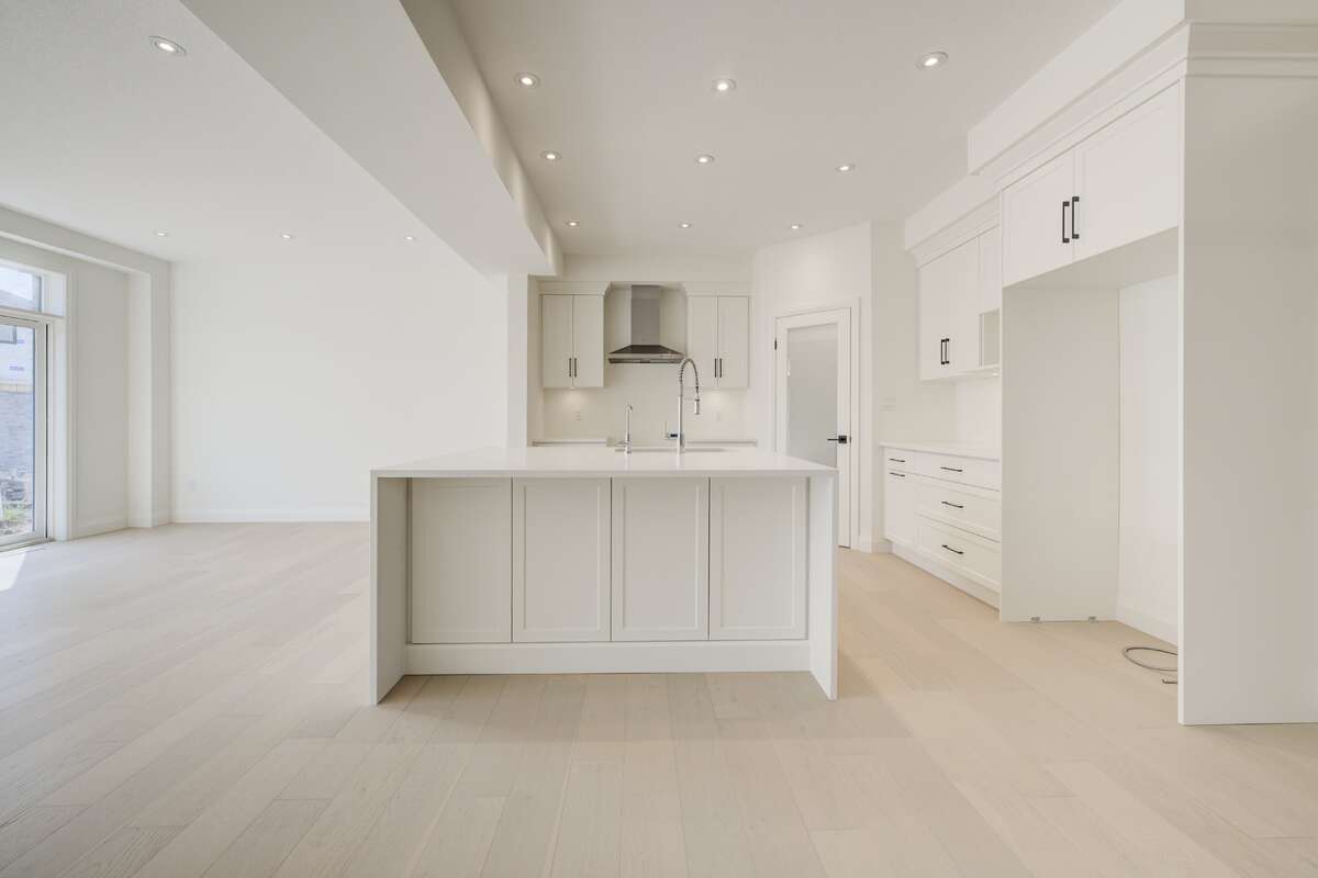 Located at 278 Rivertrail Ave in Kitchener, ON, this two-story home is 2176 finished square feet with an attached garage and a paved two vehicle-wide driveway. The upgraded stone front and entry door are a welcome introduction to the main floor open-concept design with nine-foot ceilings. The great room includes a modern linear gas fireplace, pot lights, a large window and a sliding patio door to access the rear yard. The kitchen, brightly lit with pot lights, contains upgraded white cabinetry with premium quartz countertops, a large island with a waterfall countertop, under top cabinet lighting, a walk-in pantry and dinette area. Hardwood flooring covers the main level, except for tile flooring in the powder room. An oak staircase leads upstairs, where the second floor is brightened by a skylight in the vaulted ceiling. This level includes four bedrooms, a main bathroom with two vanities and a skylight, as well as a conveniently located laundry room. The master bedroom has a coffered ceiling, a generous walk-in closet and a luxurious ensuite with a skylight, a free-standing soaker tub, a tile shower with glass door and a separate toilet room. Additional items included are air conditioning, five appliances and a chimney-style rangehood in the kitchen. This new home is move-in ready, except for second level flooring which the purchaser may select from the builder’s samples. Please visit our Model Home located at 88 Grand Flats Trail in Kitchener to arrange a viewing of this home. The Model Home is open each Tuesday and Thursday from 2pm-6pm and every Saturday from 12pm-4pm.