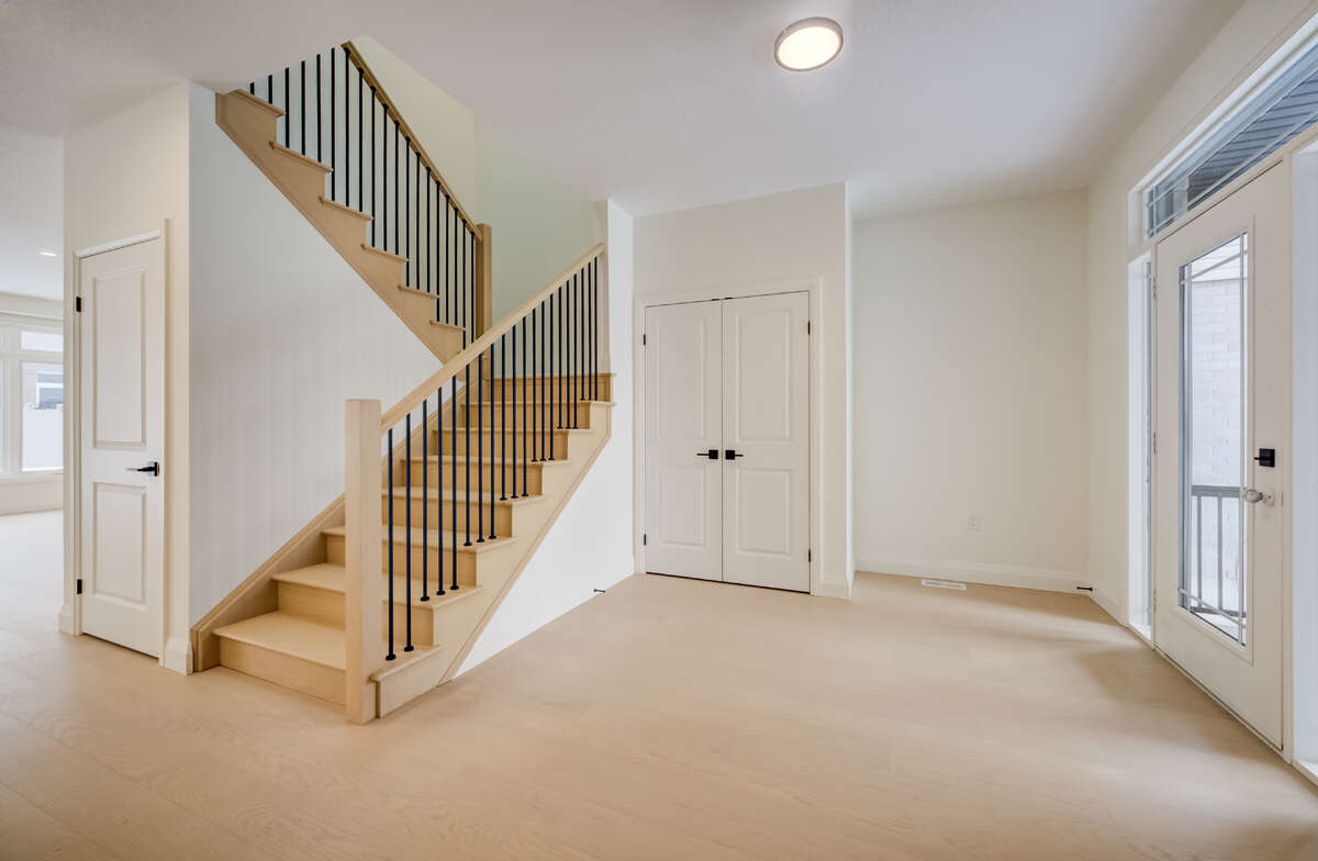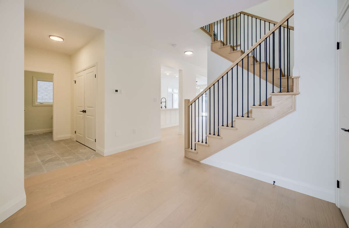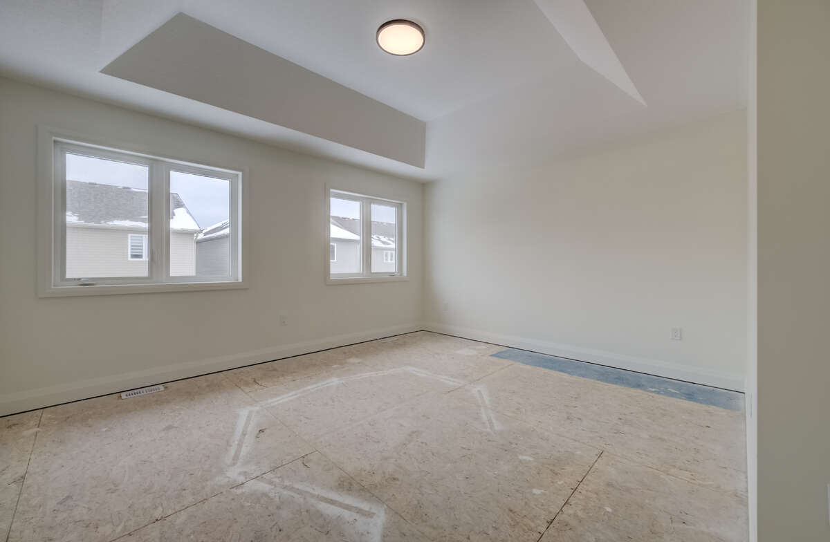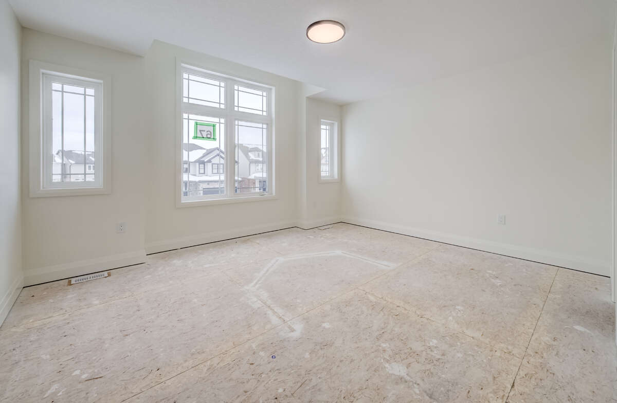 For more information on this property, please click the Brochure button. Located at 67 Crosswinds Drive in Kitchener, ON, this open-concept two-story home is 2646 finished square feet with an attached double garage and a paved driveway, withing walking distance of a neighborhood park. The main floor, with a 9-foot-high ceiling, consists of a great room, kitchen, dinette, welcoming foyer and a powder room. The great room includes a modern linear gas fireplace, pot lights and a large window with a view of the backyard. The kitchen, brightly lit by pot lights, contains upgraded white cabinetry with upper under-cabinet lighting, premium quartz countertops and a generous island that includes a breakfast bar. The dinette features a pendant light fixture and a sliding patio door with access to the rear yard. Hardwood flooring covers the main level, except for tile flooring in the powder room and entrance from the garage. An oak staircase to the second floor is brightened by a skylight in the landing area. The upper level includes four bedrooms, a main bathroom with two basins and a skylight, as well as a conveniently located laundry room. The master bedroom has a coffered ceiling, a generous walk-in closet and a luxurious ensuite with a free-standing soaker tub, tile shower with glass surround and door and a separate toilet room. Additional items included are air conditioning, five appliances, chimney-style rangehood and drawer microwave in the kitchen. This new home is move-in ready, except for second level flooring which the purchaser may select from the builder’s samples.