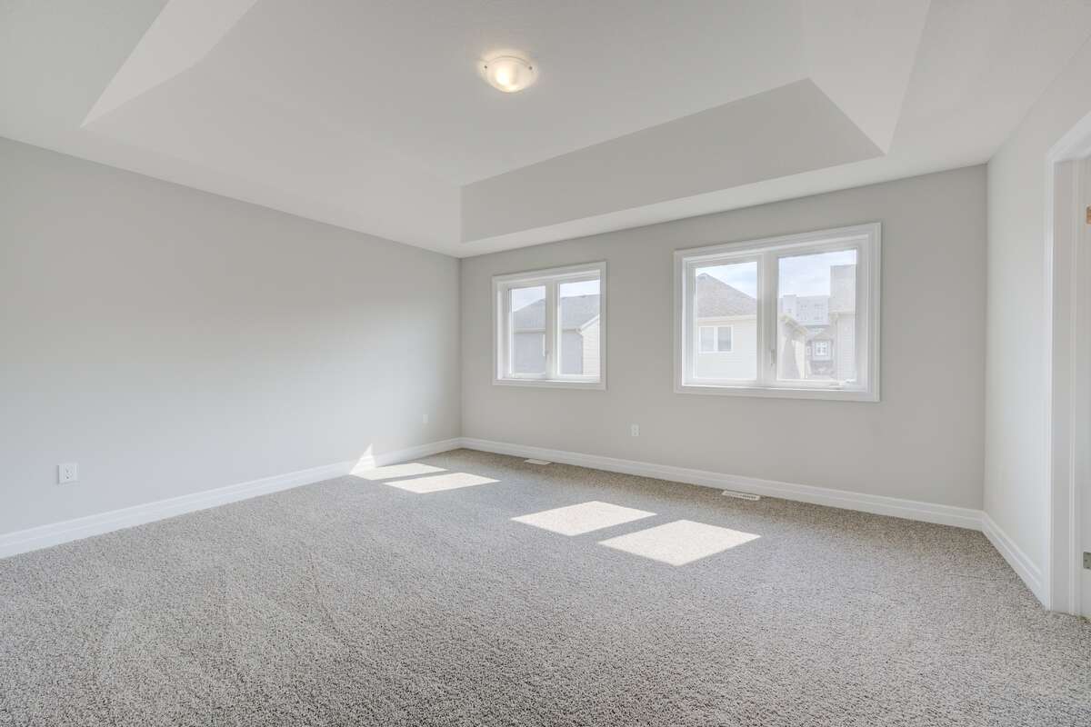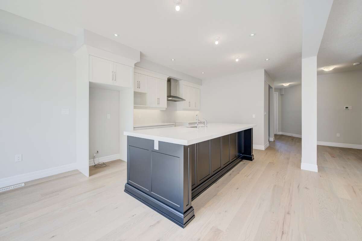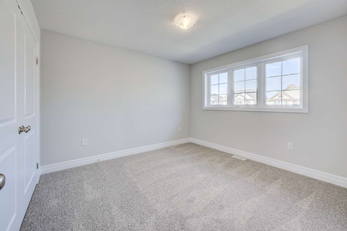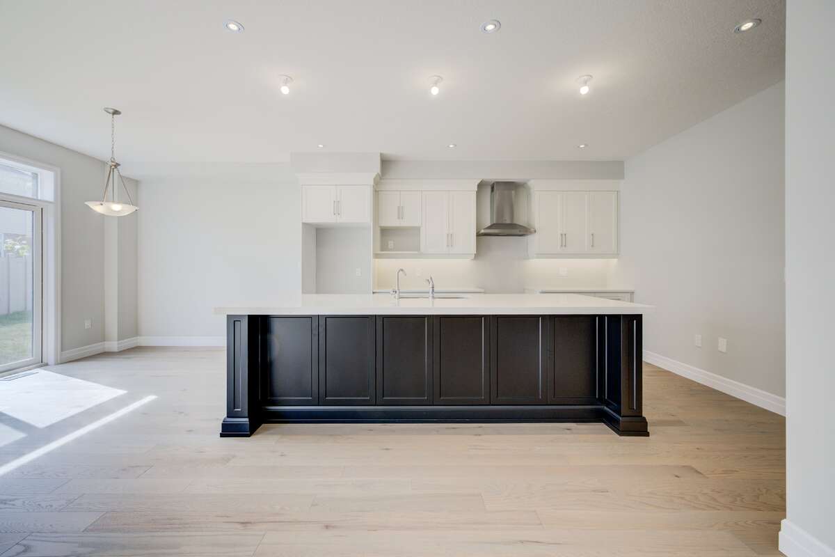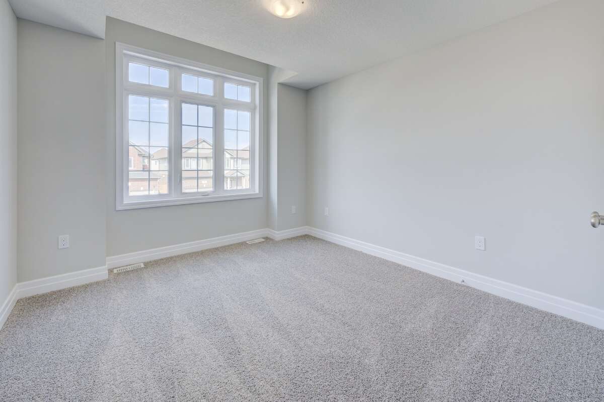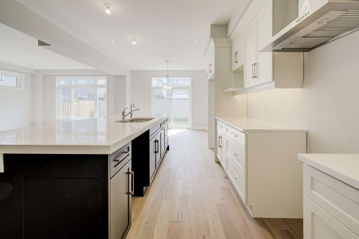 Located at 83 Crosswinds Drive in Kitchener, ON, this open-concept two-story home is 2485 finished square feet with an attached double garage and a paved driveway, withing walking distance of a neighborhood park. The main floor, with a 9-foot-high ceiling, consists of a great room, kitchen, dinette, den with a large front-facing window and a powder room. The great room includes a modern linear gas fireplace, pot lights and a large window with a view of the backyard. The kitchen, brightly lit by pot lights, contains upgraded white cabinetry with upper under-cabinet lighting, premium quartz countertops and a generous black island that includes a breakfast bar. The dinette features a pendant light fixture and a sliding patio door with access to the rear yard. Hardwood flooring covers the main level, except for tile flooring in the powder room and entrance from the garage. An oak staircase to the second floor is brightened by a window in the landing area. The upper level includes four bedrooms, a main bathroom with two vanities and a skylight, as well as a conveniently located laundry room. The master bedroom has a coffered ceiling, a generous walk-in closet and a luxurious ensuite with a free-standing soaker tub, tile shower with glass surround and door and a separate toilet room. Additional items included are air conditioning, five appliances and a chimney-style rangehood in the kitchen. This new home is finished and move-in ready! Please visit our Model Home located at 88 Grand Flats Trail in Kitchener to arrange a viewing of this home. The Model Home is open each Tuesday and Thursday from 2pm-6pm and every Saturday from 12pm-4pm.