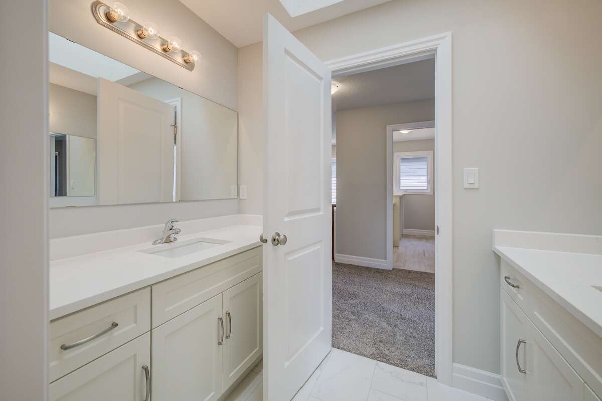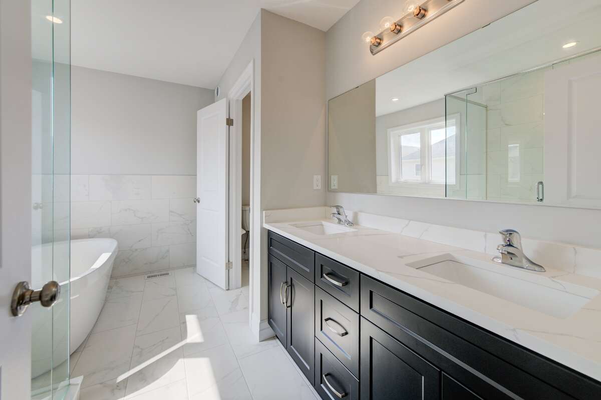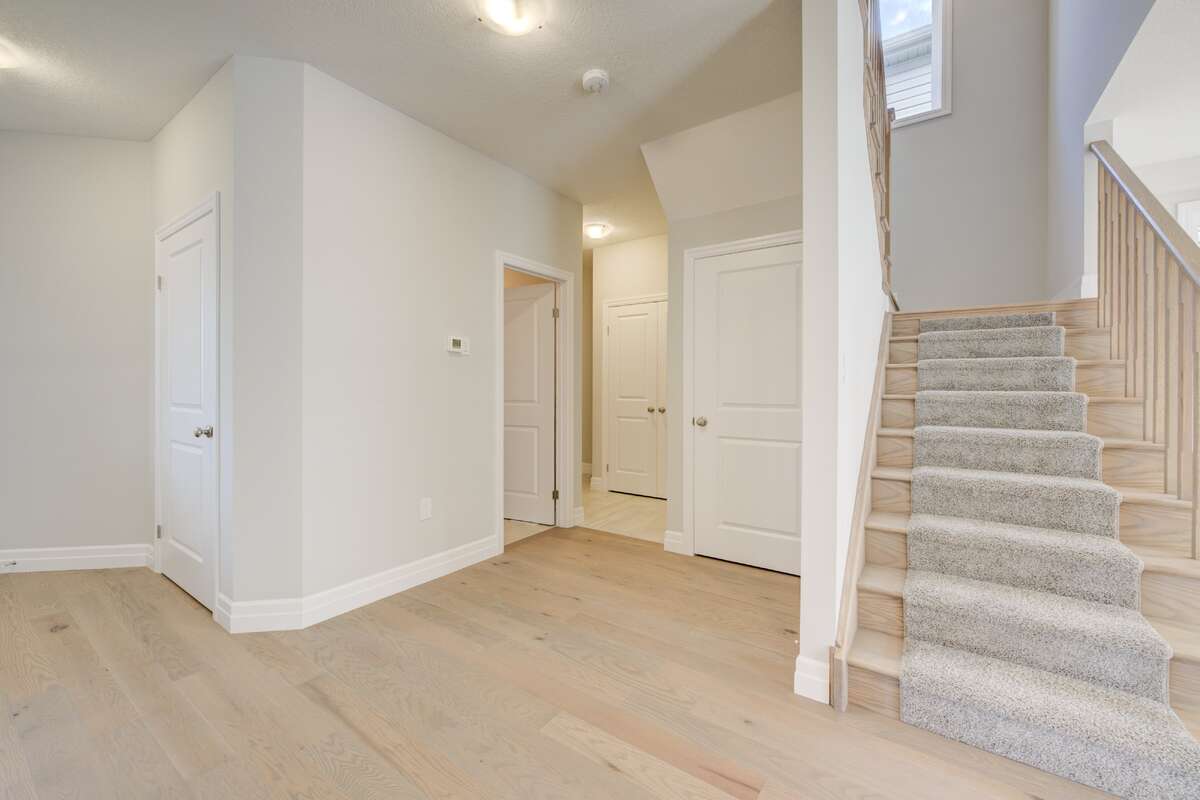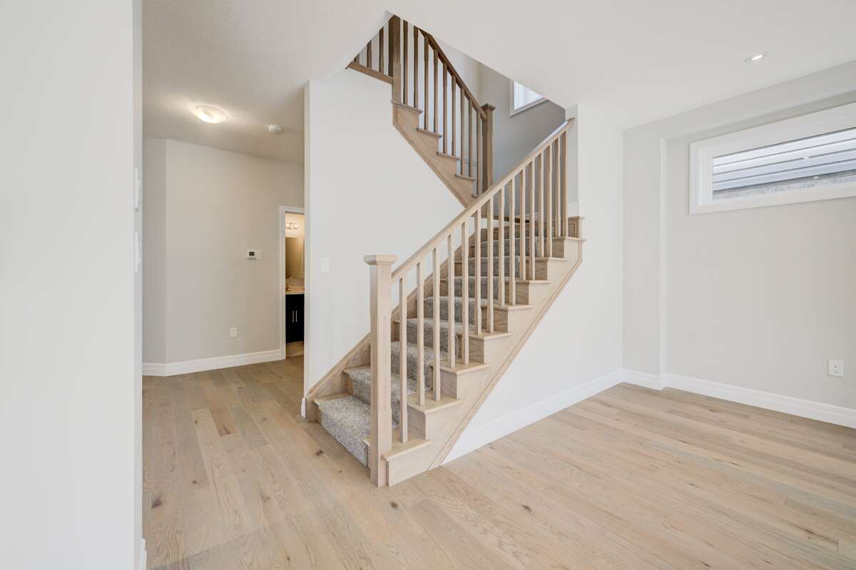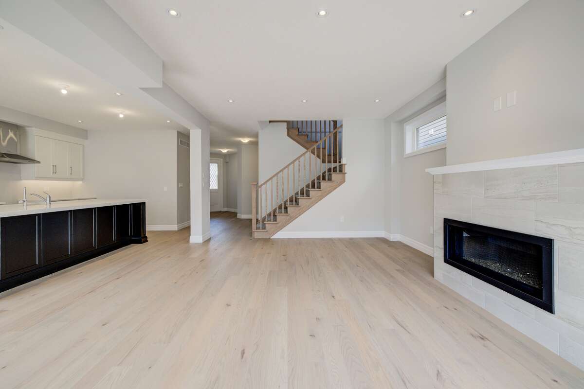 Located at 83 Crosswinds Drive in Kitchener, ON, this open-concept two-story home is 2485 finished square feet with an attached double garage and a paved driveway, withing walking distance of a neighborhood park. The main floor, with a 9-foot-high ceiling, consists of a great room, kitchen, dinette, den with a large front-facing window and a powder room. The great room includes a modern linear gas fireplace, pot lights and a large window with a view of the backyard. The kitchen, brightly lit by pot lights, contains upgraded white cabinetry with upper under-cabinet lighting, premium quartz countertops and a generous black island that includes a breakfast bar. The dinette features a pendant light fixture and a sliding patio door with access to the rear yard. Hardwood flooring covers the main level, except for tile flooring in the powder room and entrance from the garage. An oak staircase to the second floor is brightened by a window in the landing area. The upper level includes four bedrooms, a main bathroom with two vanities and a skylight, as well as a conveniently located laundry room. The master bedroom has a coffered ceiling, a generous walk-in closet and a luxurious ensuite with a free-standing soaker tub, tile shower with glass surround and door and a separate toilet room. Additional items included are air conditioning, five appliances and a chimney-style rangehood in the kitchen. This new home is finished and move-in ready! Please visit our Model Home located at 88 Grand Flats Trail in Kitchener to arrange a viewing of this home. The Model Home is open each Tuesday and Thursday from 2pm-6pm and every Saturday from 12pm-4pm.