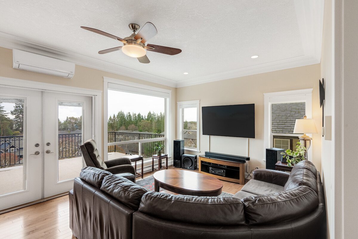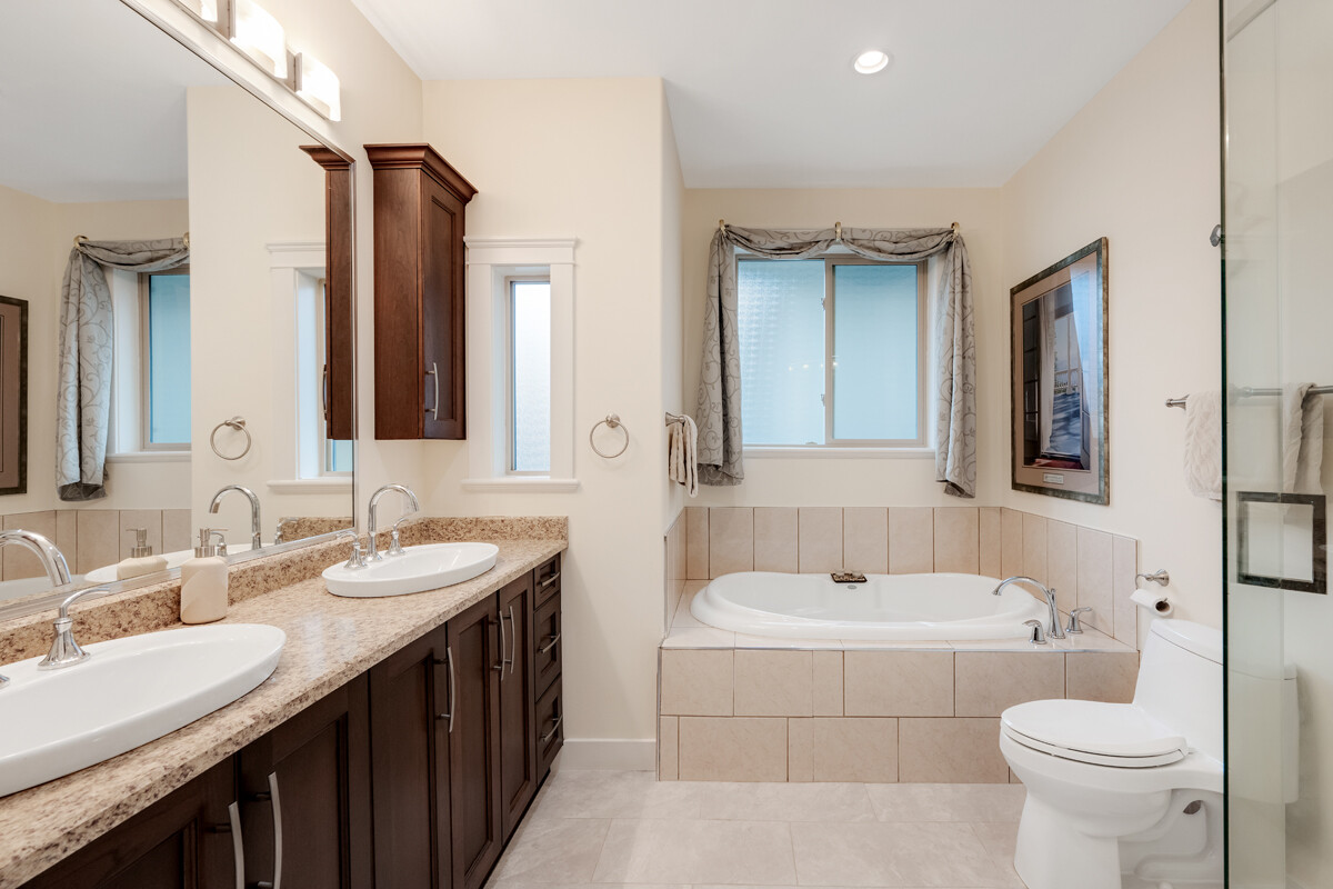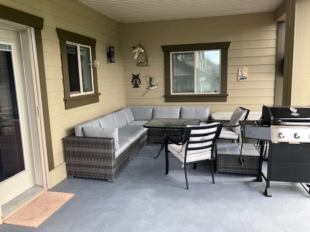 LUXURY, VIEWS, QUIET, with legal 2 bedroom suite and a family in-law suite on beautiful Bear Mountain, 7 beds, 4 bath, 3 laundry rooms, w/ 2 bed apartment, and an extra 1 bed for family/in-laws . Quiet cul-de-sac, camera security parking for six cars, landscape lot front and back, w/ mountain views on both levels. Lots of extras, new roof, south facing large deck and patio area. Upper main floor 2312 sq. ft., heat pump AC and radiant heating, 4 bedrooms, luxury master bathroom with jacuzzi. Dine-in kitchen w/Café gas stove w double ovens, plus separate dining room, living room and TV/family room. Lower 2 bedroom legal suite 1139 sq. ft. has open concept kitchen dinning, separate family room and private patio area. 1 bedroom family/in-law suite 537 sq. ft., w/walk-in closet. Both have all new appliances. This is real value, in multi-family zone, totally upgraded; more house for less money!