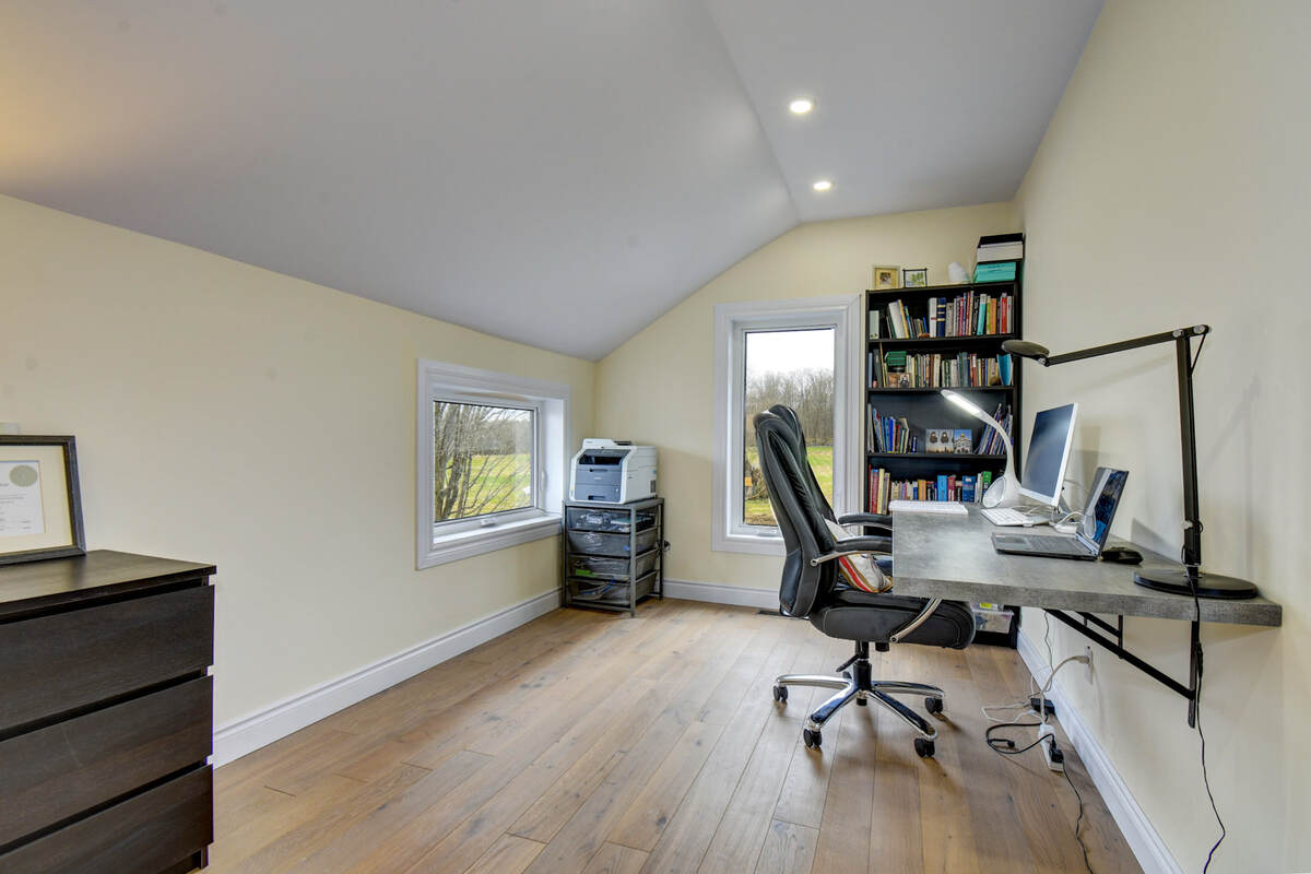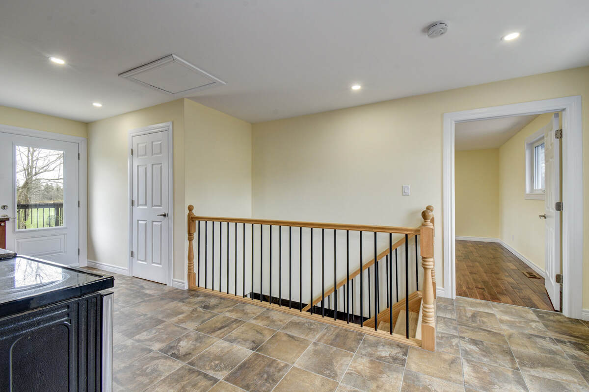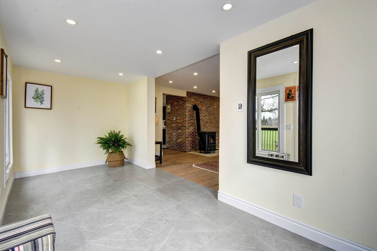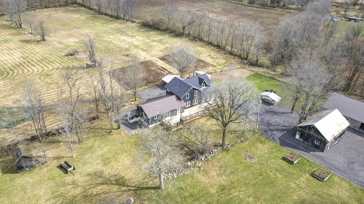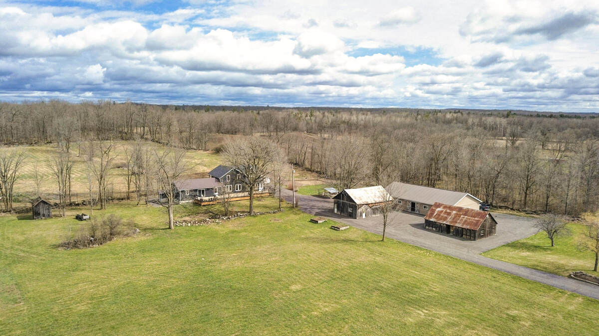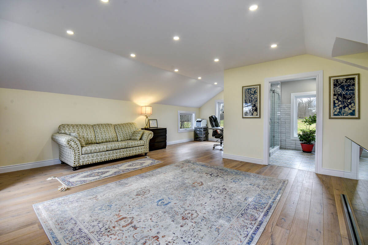 65 acres of agricultural land and aprox. 45 acres bushes with mature trees. Open concept kitchen & dining area encompasses modern cabinetry, huge quartz countertop island with farm sink, white backsplash and all brand new appliances. Entrance has wifi heated floors. Recessed lighting throughout the house. In-law suit capability. Walk-out basement with cozy wood stove. High efficiency brand new windows and doors, forced air dual oil-wood stove on Google Smart thermostat. Hardwood engineered floors. 800 sq ft deck. STARLINK internet (included). New build (2007) insulated barn (2000sqft) with hydro and water includes 5 horse stalls. Two other century barns in good condition. Insulated chicken coop, large stand of maples for making your own syrup. Video surveillance of the territory. Great hunting area. This is an absolute MUST see.
