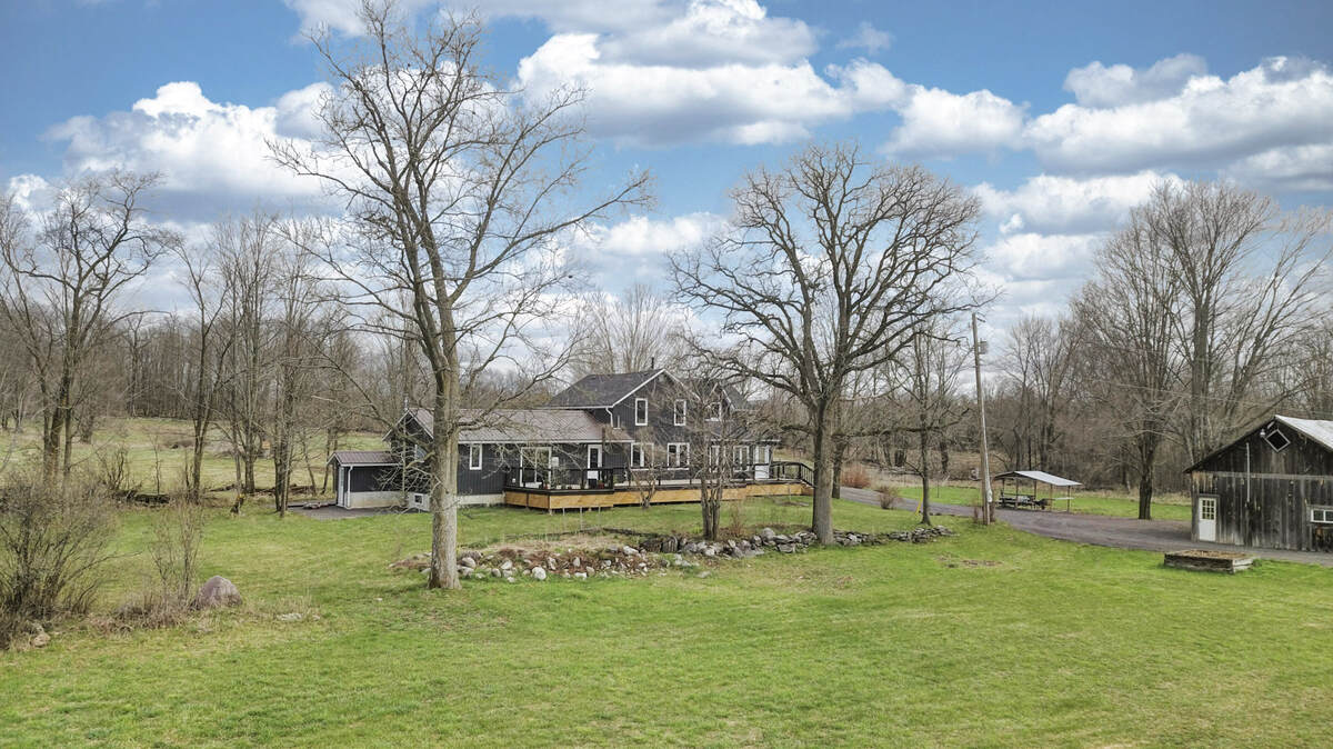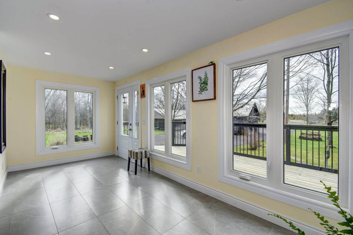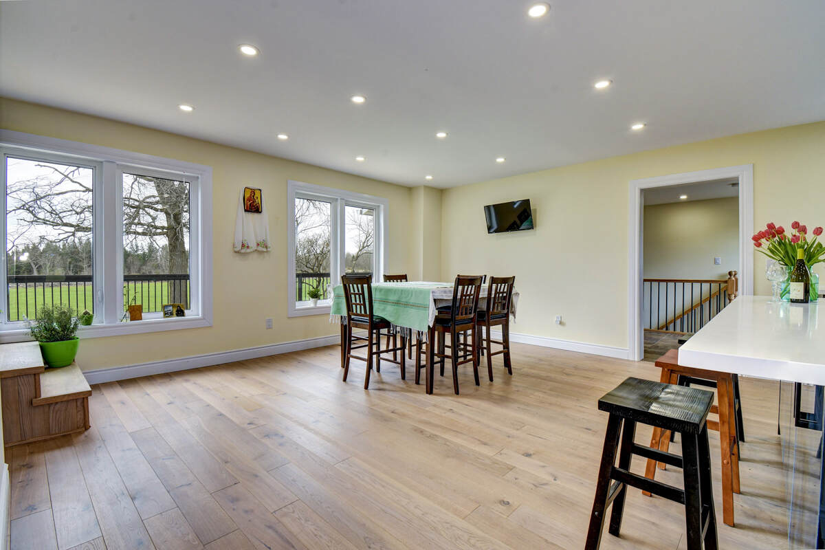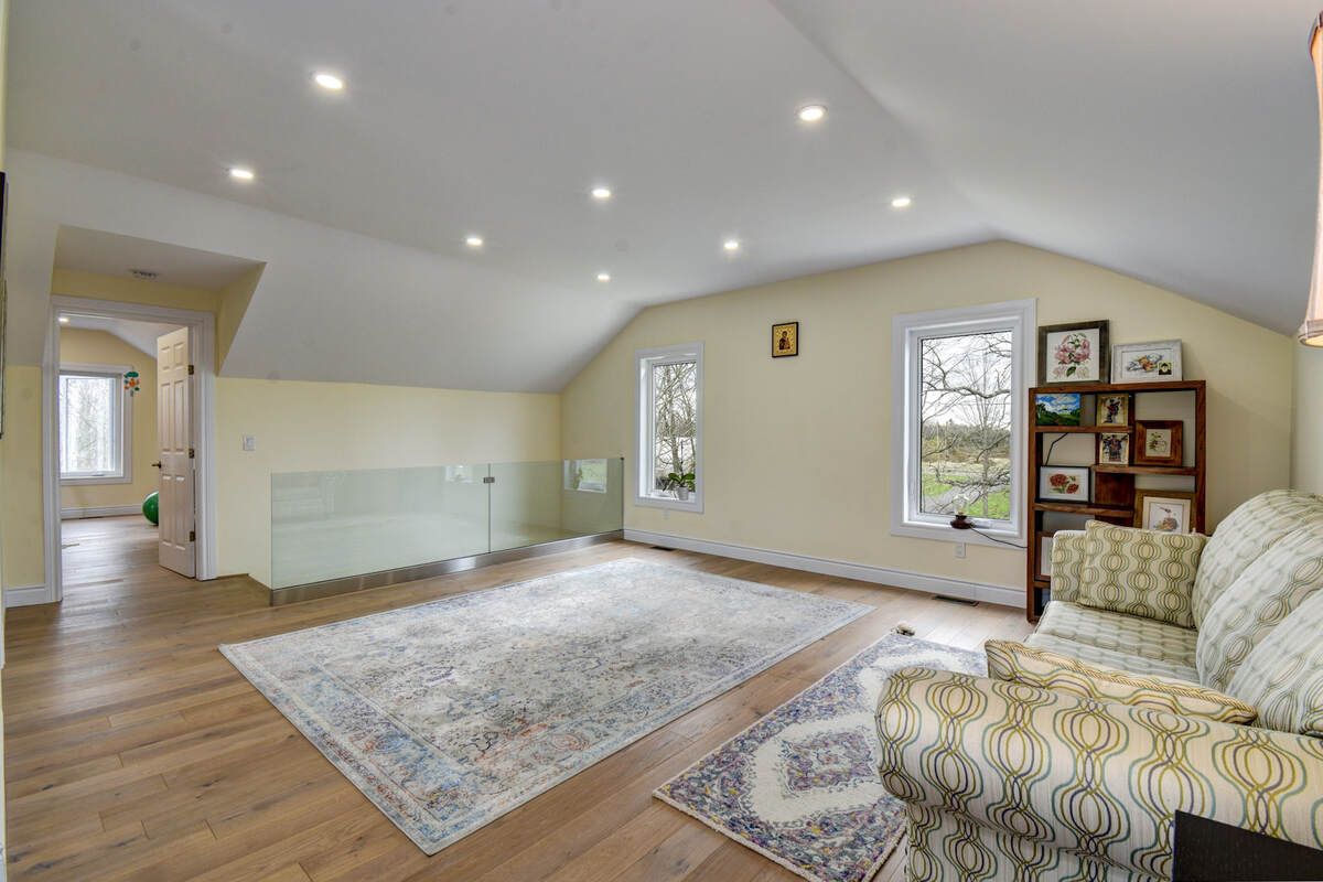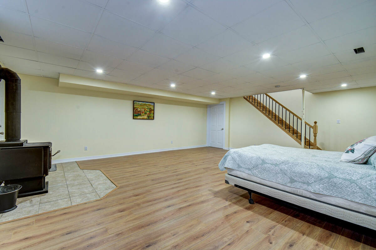 65 acres of agricultural land and aprox. 45 acres bushes with mature trees. Open concept kitchen & dining area encompasses modern cabinetry, huge quartz countertop island with farm sink, white backsplash and all brand new appliances. Entrance has wifi heated floors. Recessed lighting throughout the house. In-law suit capability. Walk-out basement with cozy wood stove. High efficiency brand new windows and doors, forced air dual oil-wood stove on Google Smart thermostat. Hardwood engineered floors. 800 sq ft deck. STARLINK internet (included). New build (2007) insulated barn (2000sqft) with hydro and water includes 5 horse stalls. Two other century barns in good condition. Insulated chicken coop, large stand of maples for making your own syrup. Video surveillance of the territory. Great hunting area. This is an absolute MUST see.