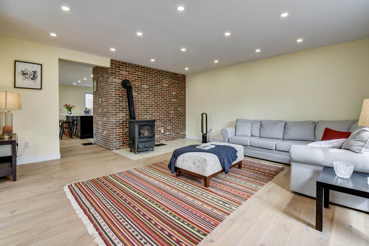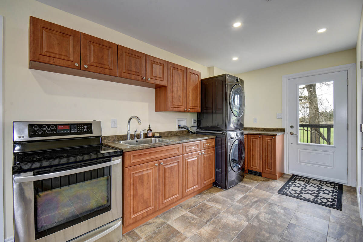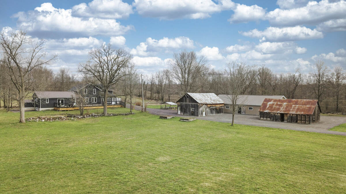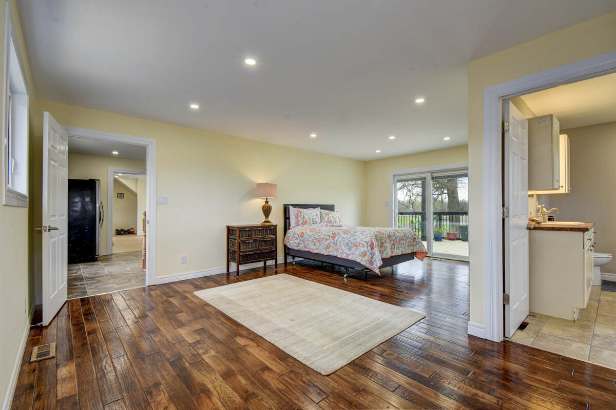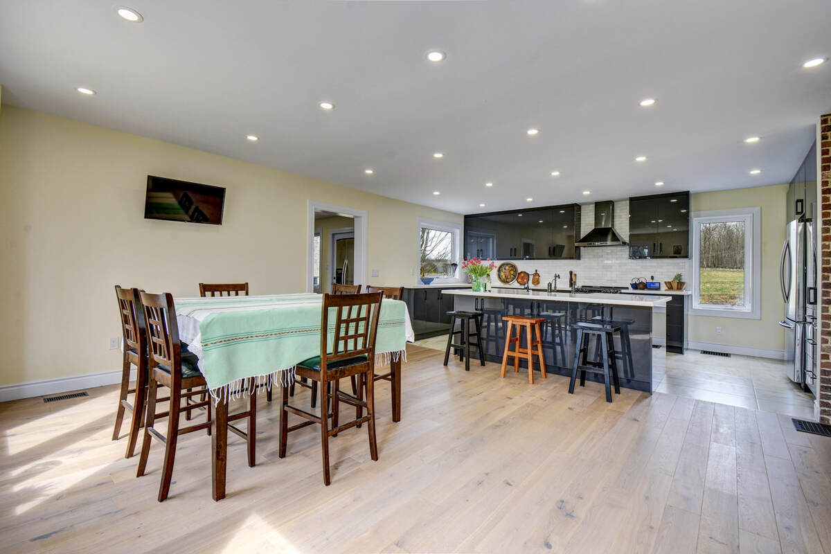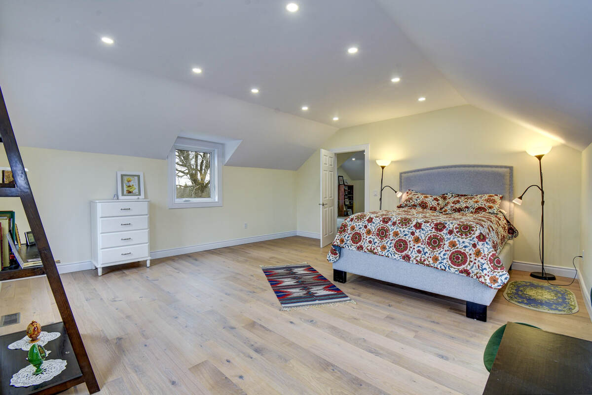 65 acres of agricultural land and aprox. 45 acres bushes with mature trees. Open concept kitchen & dining area encompasses modern cabinetry, huge quartz countertop island with farm sink, white backsplash and all brand new appliances. Entrance has wifi heated floors. Recessed lighting throughout the house. In-law suit capability. Walk-out basement with cozy wood stove. High efficiency brand new windows and doors, forced air dual oil-wood stove on Google Smart thermostat. Hardwood engineered floors. 800 sq ft deck. STARLINK internet (included). New build (2007) insulated barn (2000sqft) with hydro and water includes 5 horse stalls. Two other century barns in good condition. Insulated chicken coop, large stand of maples for making your own syrup. Video surveillance of the territory. Great hunting area. This is an absolute MUST see.