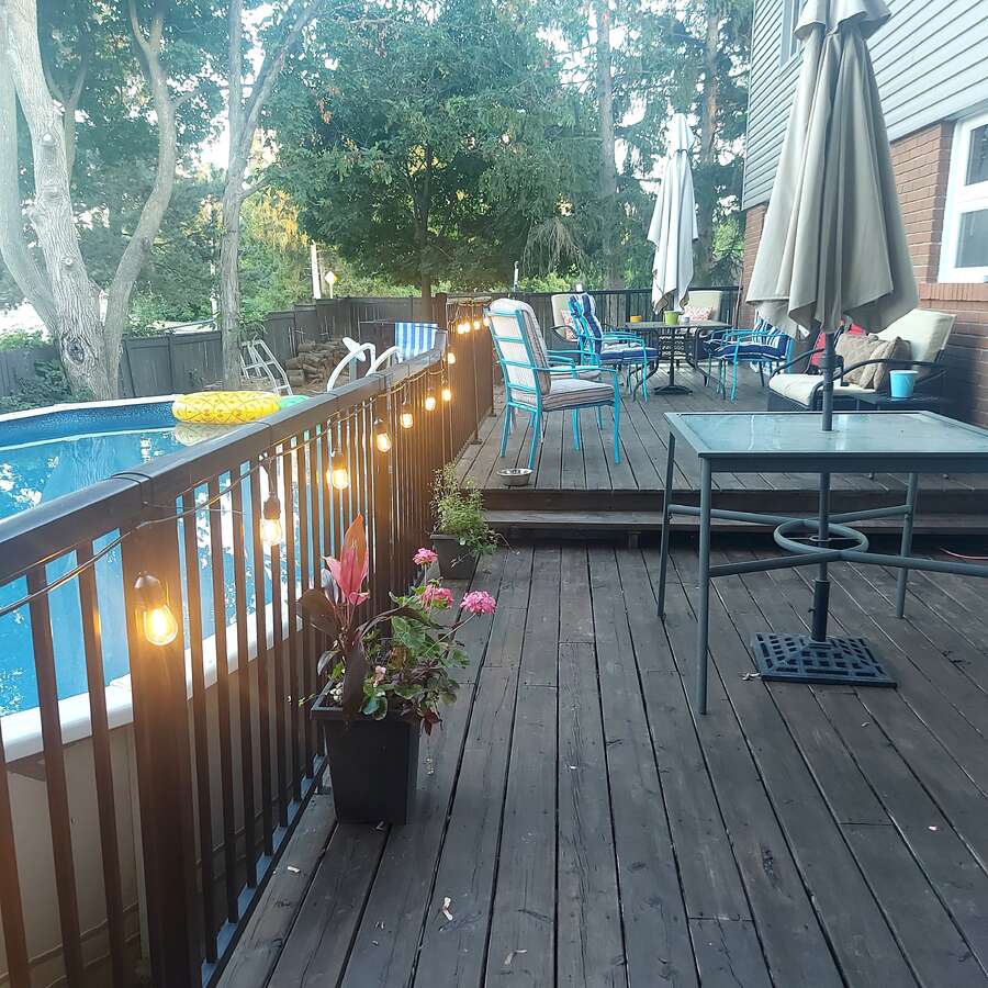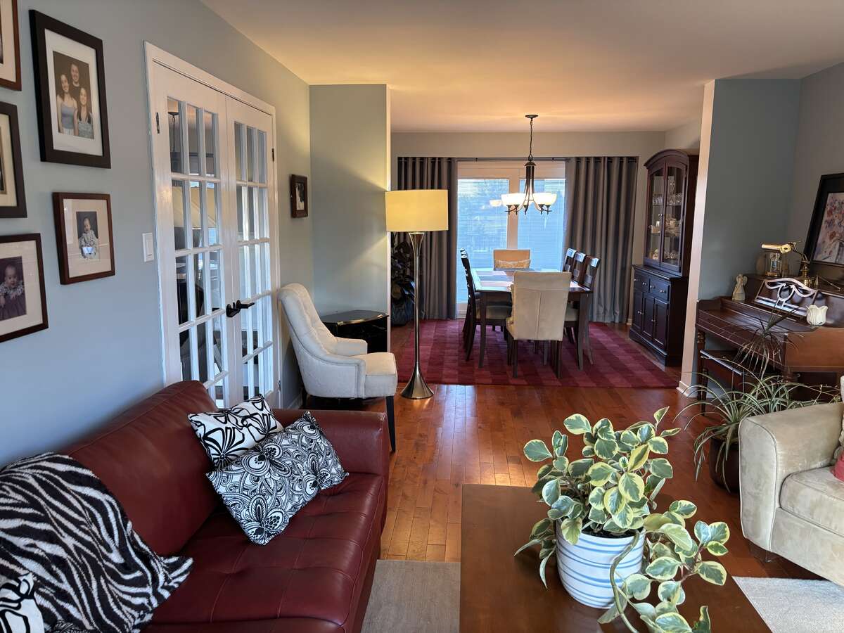Bright and spacious, this home offers formal living areas with french doors, open-concept kitchen with high-end appliances, sunken family room w/ wood-burning fireplace. Convenient main floor laundry and powder room. Four spacious bedrooms, including a huge master bedroom w/ bay window, walk-in closet, and 5-pce ensuite. Two main floor exits lead to the spacious 50' deck which is perfect as a quiet retreat or for entertaining (32' oval pool REMOVED in 2024). The backyard has plenty of room for play and gardening, with 2 gated entrances.