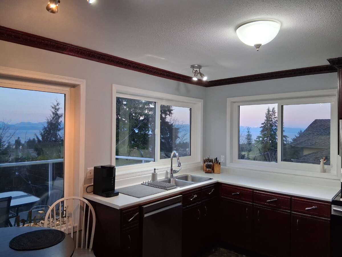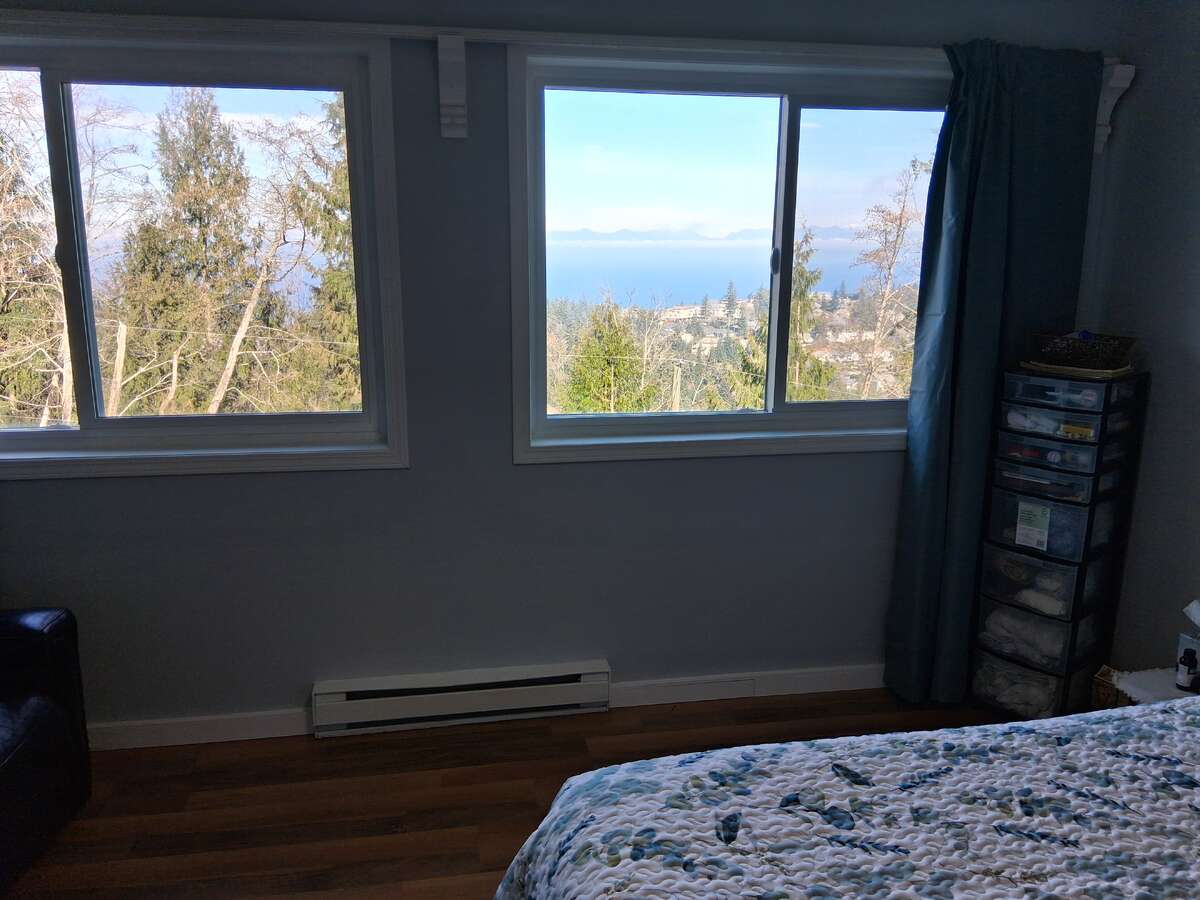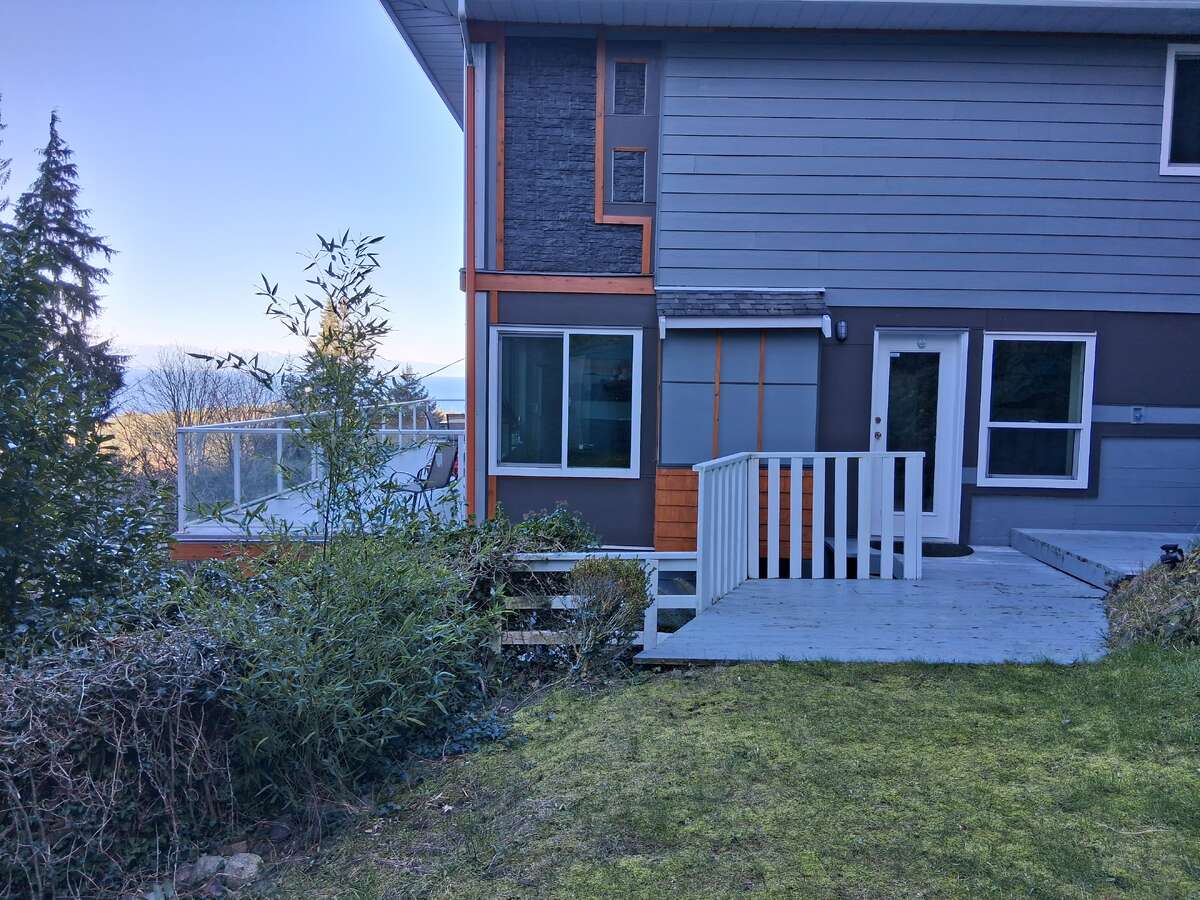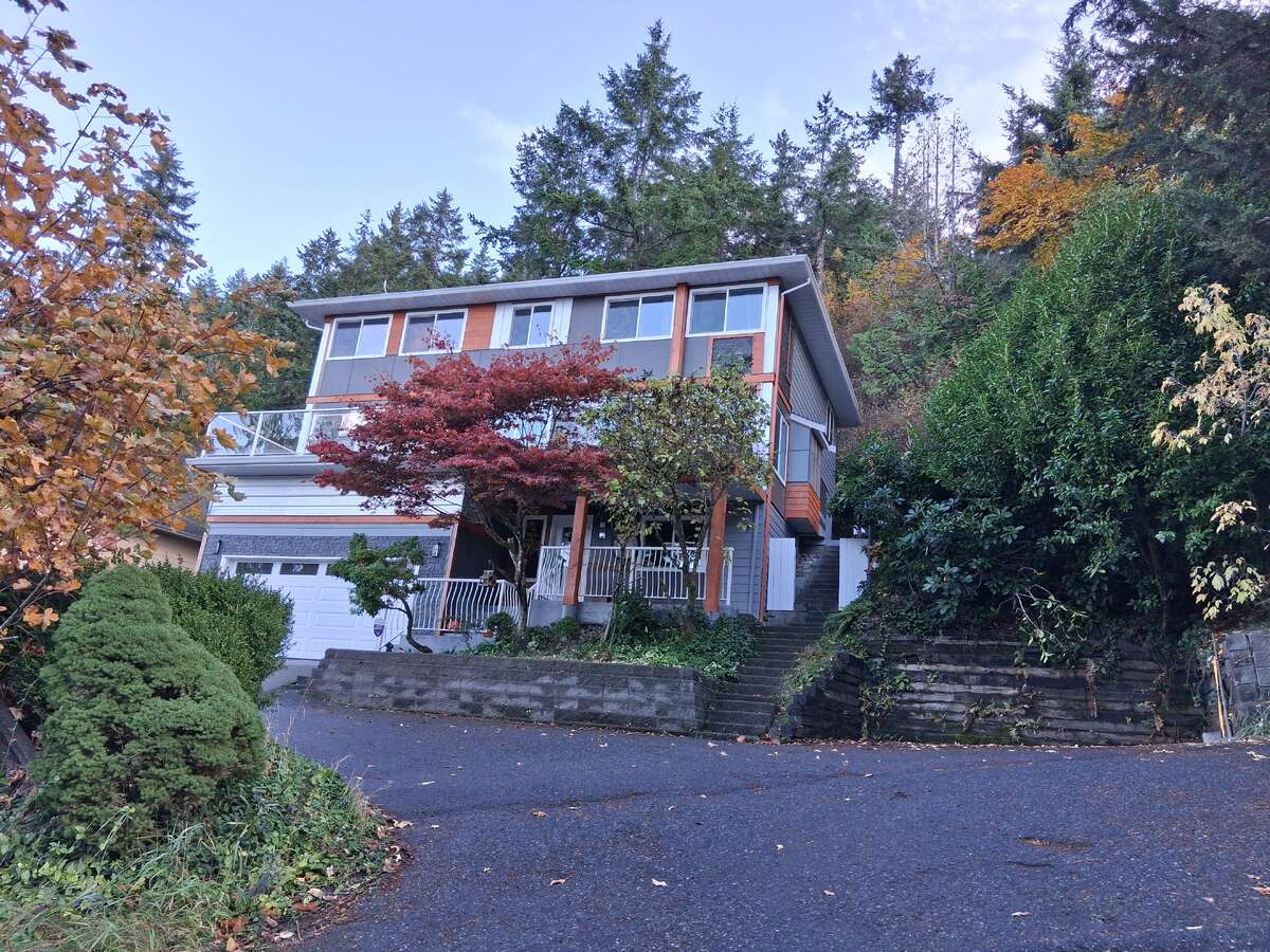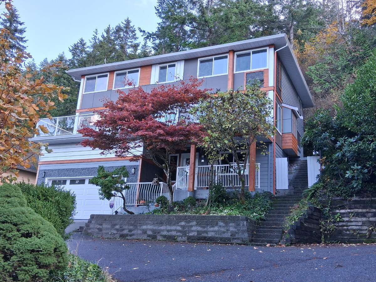This is a spectacular executive fully updated move-in ready Big Ocean & Mountain view home-2,517SF + 500sf deck. On the MAIN LEVEL there are 2 ocean & mountain view decks off the large L-shaped LR with wet bar & gas fireplace. By day overlooking soaring bald eagles, Alaska cruise ships, sailboats & orcas. By night glistening views of the village of lights below & also Vancouver, Sunshine Coast & cruise ships. The oceanview kitchen & eating nook has lots of cupboards & counters, 4 new SS appliances & a pantry. The large formal DR with ocean & forest views. A 3pc bath & a laundry with new LG appls. UPSTAIRS has 4 oceanview bedrooms, a 4 pc bath & 3pc ensuite. The primary is huge & gorgeous with ocean views on the front & forest views on the back with 2 art-deco fans, 2 wardrobes & 3 pc ensuite. The LOWER LEVEL has the main entry with theatre/office/games room a double garage with lots of storage & EV plugs. This home is on a paved lane off Laguna for safety & privacy with an RV/boat pad & parking for 5 vehicles. There are no homes across the street-just forest & oceanviews-quite & low-traffic area with very nice neighbours & wonderful schools. All kinds of hiking, biking, kayaking, beaches, with Neck Park, Pipers Lagoon & Linley Valley close. Yet the malls & shopping are all just minutes away. This low-maintenance yard is so beautiful all year around. There are tons of flowering trees & bushes ready to open soon. This is a beautiful paradise retreat in the city!
