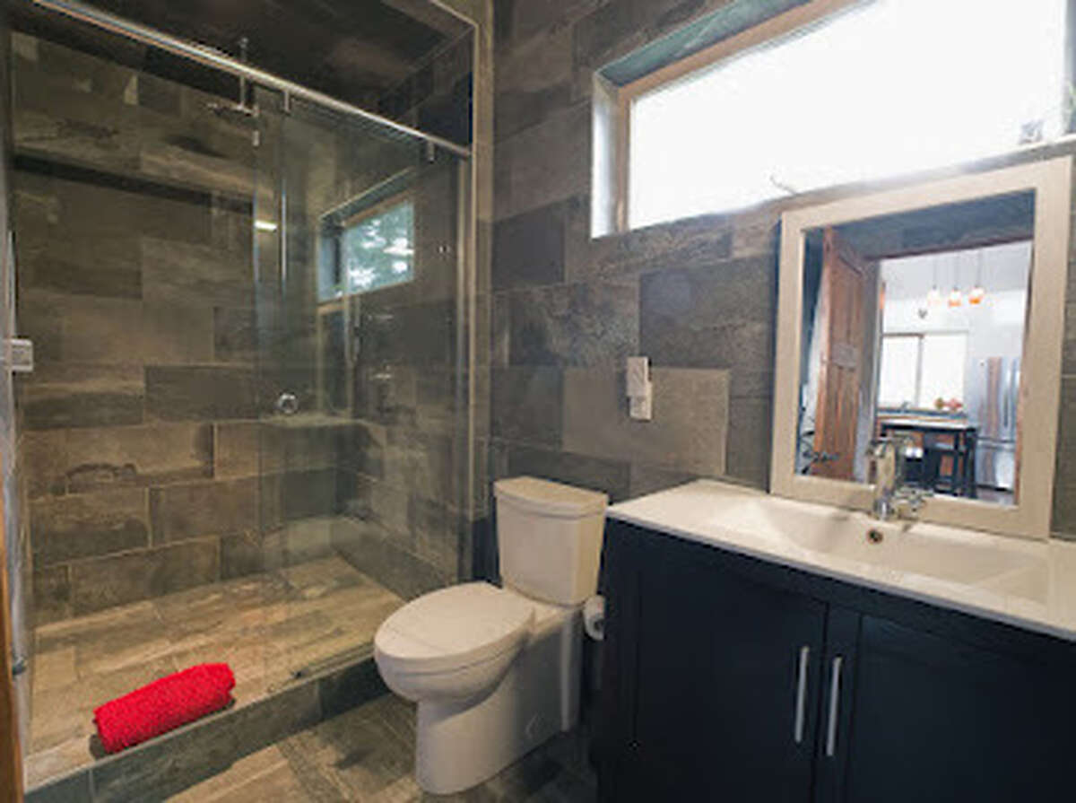 1 bathroom with a custom tile shower