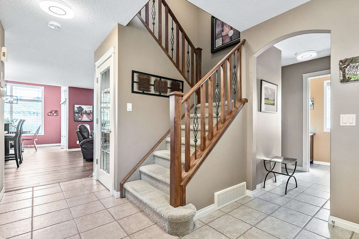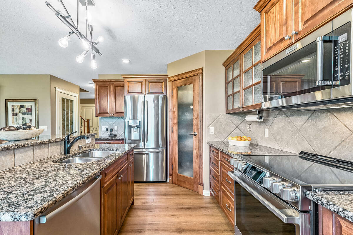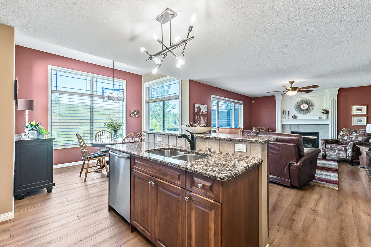 Welcome to your new home in the serene Sheep River Cove. This home offers an exceptional blend of comfort and luxury while backing onto green space. Nestled in a prime location, this home offers direct access to the Sheep River Ridge pathways, bike trails, parks, green spaces, schools and shopping. Spacious and modern, this 2-story home boasts 3000+ square feet of livable space. As you step inside, you’ll be greeted by a spacious tiled entrance that sets the tone for the rest of the house. The main floor features a versatile office/ dining room, perfect for your work-from-home needs or hosting dinner parties. The fantastic kitchen boasts granite countertops, induction range, updated lighting and a bright eating area. The adjacent living room, complete with a cozy fireplace, is ideal for relaxing with family and friends. Convenience is key with a main floor laundry room. The home is equipped with numerous upgrades, including newly installed luxury vinyl plank flooring, air conditioning, a dual-zone heating system, a gas hook-up for your BBQ, an alarm system, ceiling fans throughout, water softener and two outdoor storage sheds. Upstairs, you’ll find a massive bonus room with a corner fireplace, providing a perfect space for a home theater or play area. The spacious master bedroom is a true retreat, featuring a walk-in closet, a bay window with a stylish bench and a lovely 4-piece ensuite. The ensuite features a skylight, a separate shower and a huge soaker tub. Two additional good-sized bedrooms and a guest 4-piece bath complete the upper level. The lower level is fully finished and offers a versatile rec room, an additional bedroom, a 4-piece bathroom and a spacious room that can serve as storage, office or play room. Don’t forget to check out the heated double garage which comes complete with overhead shelving and epoxy flooring, providing ample storage and a clean, polished look. This home truly has it all and is ready for you to move in and make it your own. Don’t miss the opportunity to own this beautiful property in a fantastic location!