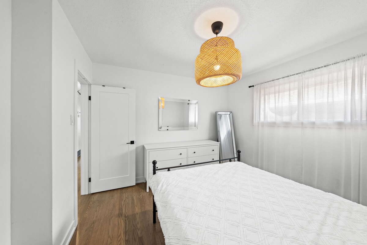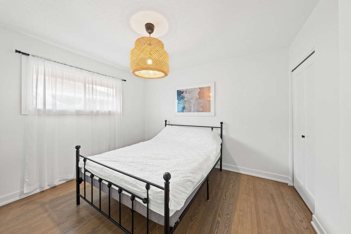 The fully renovated main floor (2023) features stylish laminate flooring throughout, a bright and functional layout, and a modern kitchen complete with granite countertops, backsplash, and a cozy breakfast nook. The main level offers three well-sized bedrooms, a full bathroom, and a spacious living area perfect for family living or entertaining. A standout feature of this property is the fully self-contained in-law suite with a separate entrance.
