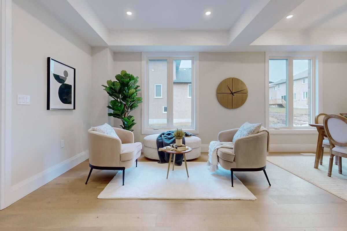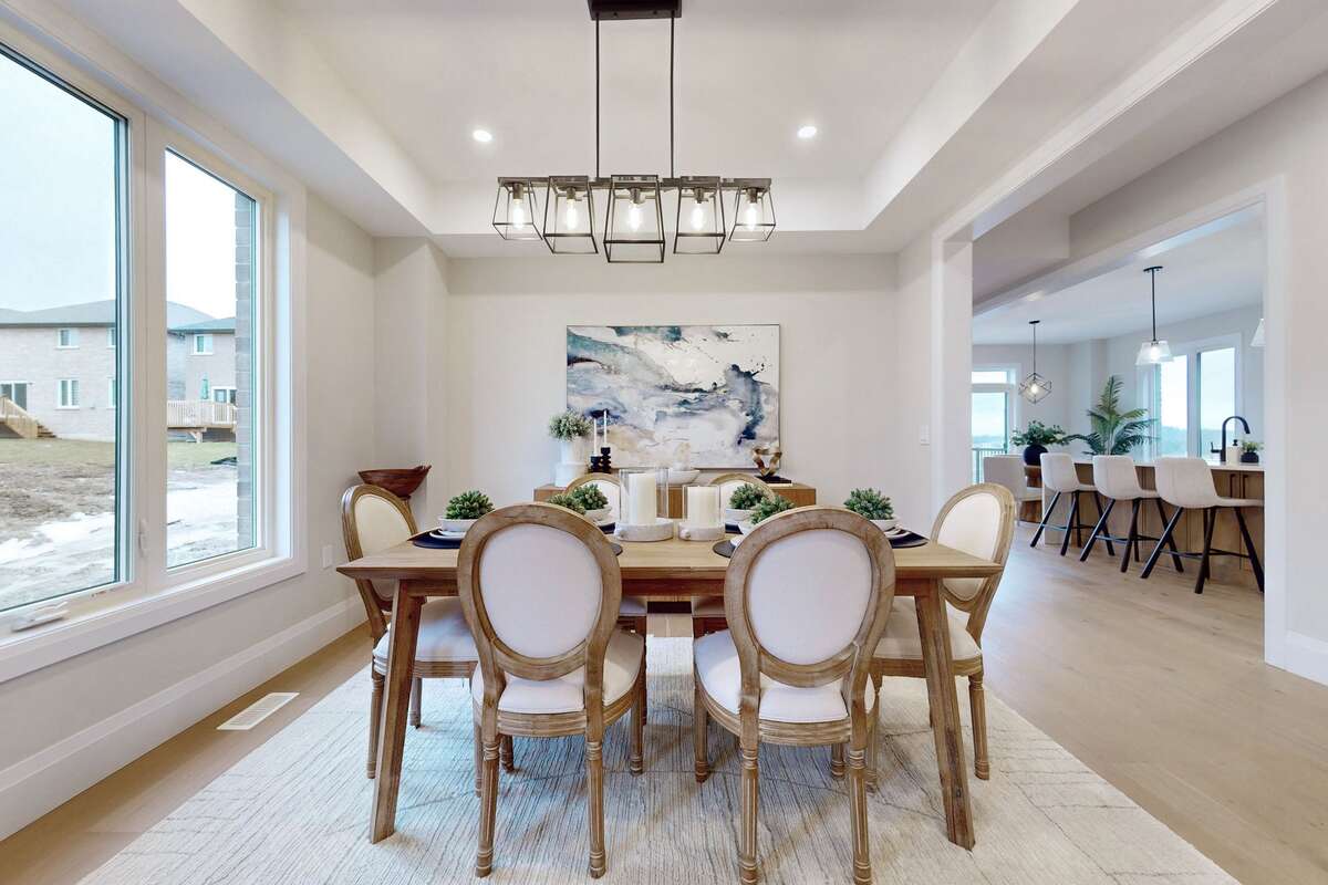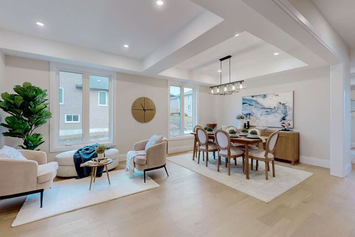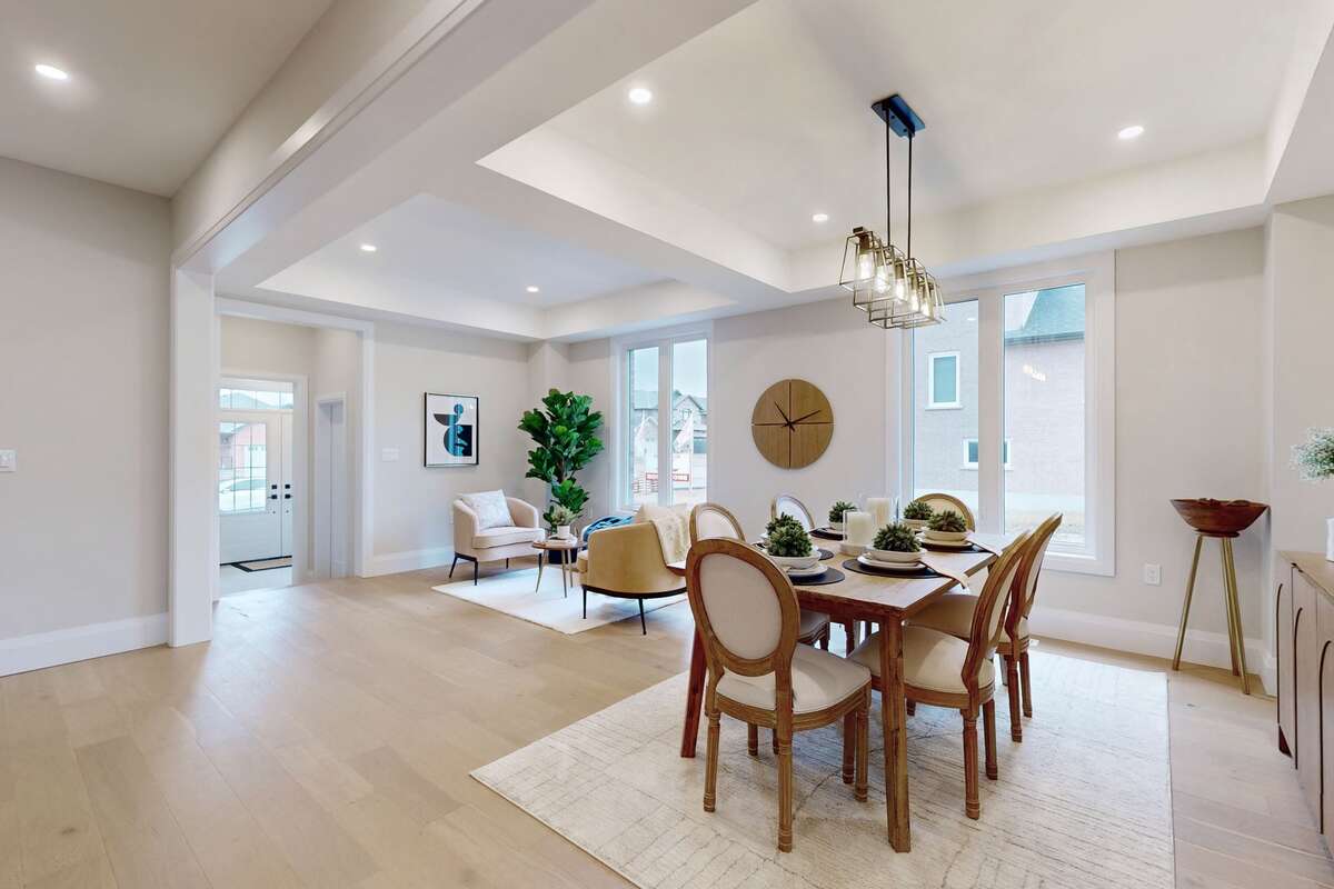 Stunning! Brand new fully upgraded model home by Maplewood Homes! This home features 2,960 sqft of living space plus a custom finished basement. The home includes and designer stone and brick exterior, a beautiful stone driveway and walking path to an oversized covered front porch, wood and metal rear deck with steps down to a private backyard and 2 car garage. The interior features 4 bedrooms, 3.5 bathrooms plus an additional bedroom/office and bathroom in the basement. Further home aspects include 9' main floor ceilings and taller basement ceilings, vaulted ceilings in 3 second floor bedrooms, coffered ceiling in living/dining room and waffle ceiling treatment in great room, The home includes upgraded hardwood flooring and tile throughout and a gas fireplace in the great room. The primary bedroom boasts 2 large walk-in closets and a 5 piece spa ensuite with double sink vanity, freestanding tub and glass and tiled shower. The gourmet kitchen includes upgraded quartz counters, large island with extended breakfast bar and pantry, designer backsplash and undermount sink. Included with the home is a stainless steel kitchen appliance package, washer and dryer in the main floor laundry room, central air conditioning and much more! Come and view is one of a kind custom home for yourself!