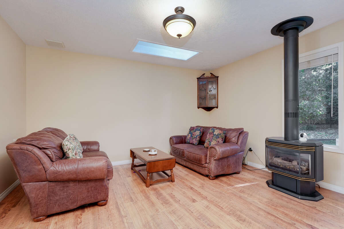 Pride of ownership is evident throughout, with numerous thoughtful upgrades that add both value and peace of mind: exterior professionally repainted, gas heating (2023), kitchen remodel (2020), HVAC (2019), expanded patio with motorized awnings (2018), updated powder room (2017), skylight and roof (2014), and front entrance canopy (2010).