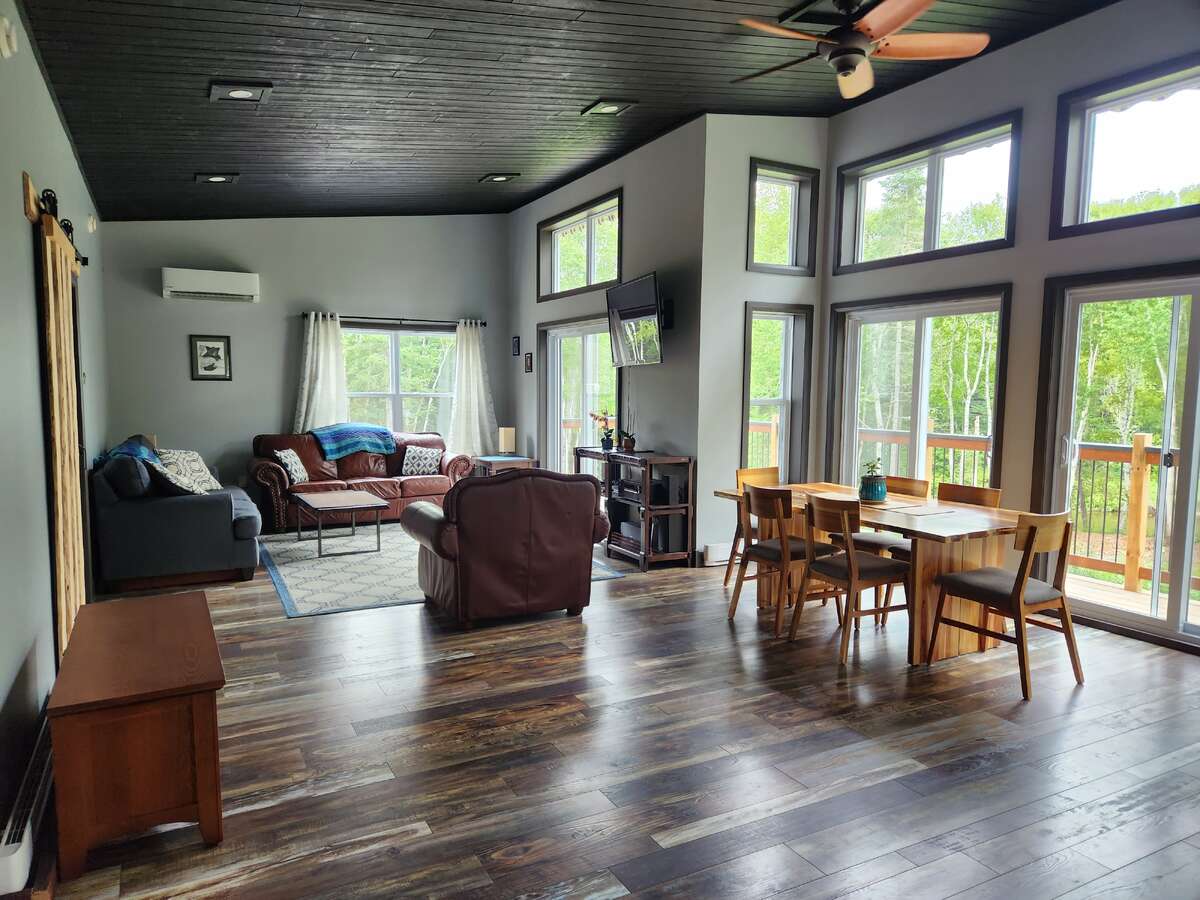Immaculate riverfront 4 Bed 2.5 Bath on private treed lot. With easy access to Hwy 2, Grand falls(10 mins) and Edmundston(20 mins) are a short drive to many amenities, while St. Leonard offers groceries, gas and restaurants just seconds away. Enjoy river views from almost every room in the home. The main floor offers 3 of the bedrooms, one of which has its own 3 piece ensuite bath. This floor also features it own living room, main floor laundry and large mudroom closet. The upper level features a large master bedroom with 5 piece ensuite with large soaker tub and large closet. The room easily accommodates a king size bed with plenty of room for side tables. The open concept living/dining/kitchen area is provided with plenty of natural light via the 12 sliding doors and transom windows. the kitchen has a large 8x3ft island, dual fridge/freezers, electric stove, dishwasher, over range microwave and large pantry/workspace for prep and bakers needs. The basement is completely open concept with studded and drywalled walls, ready for even more living space. There you will find a wood stove with duct work for circulation, brand new energy efficient heat pump water heater(2024) for even more savings, full Culligan water filtration(2022) and deep freezer. The rear of the home features a two tier deck with a hot tub, gazebo(2023), and porch swing to enjoy the sounds of nature. 2 car ports(15.7x24ft) are on both sides of a (16.5x24) garage/workshop. There is also a large wood shed with enclosed storage room to hold all of your stuff. Septic leach field has been completely replaced(2023) and fresh gravel laid in the driveway(2023). This home is heated by 2 heat pumps(2022), wood stove, and electric baseboard heaters. Average power bill is under $250 a month with full time use of heat pumps. Bus route for both English(Grand Falls) and French(St.Leonard) schools. This home is also conveniently located on the NB wide ATV/snowmobile trials for the toy enthusiast. Willing to work with buyer agents of a fee as well. Don't miss the opportunity to view this home!