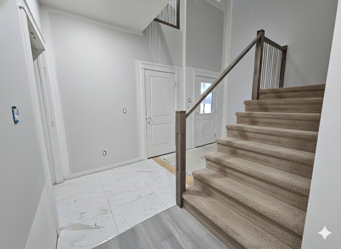 Step through the grand double-height foyer and immediately feel the openness and sophistication that define this home. The open-concept main floor flows effortlessly from the spacious living room — featuring a modern fireplace and large sun-filled windows — to the bright and inviting dining area.