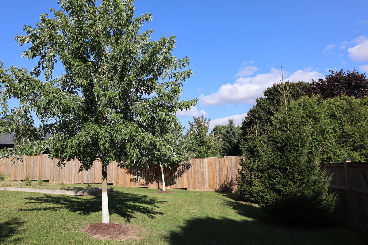 Full services with fibre optics, natural gas, and municipal sewers. Large lot has been augmented with privacy trees, fruit