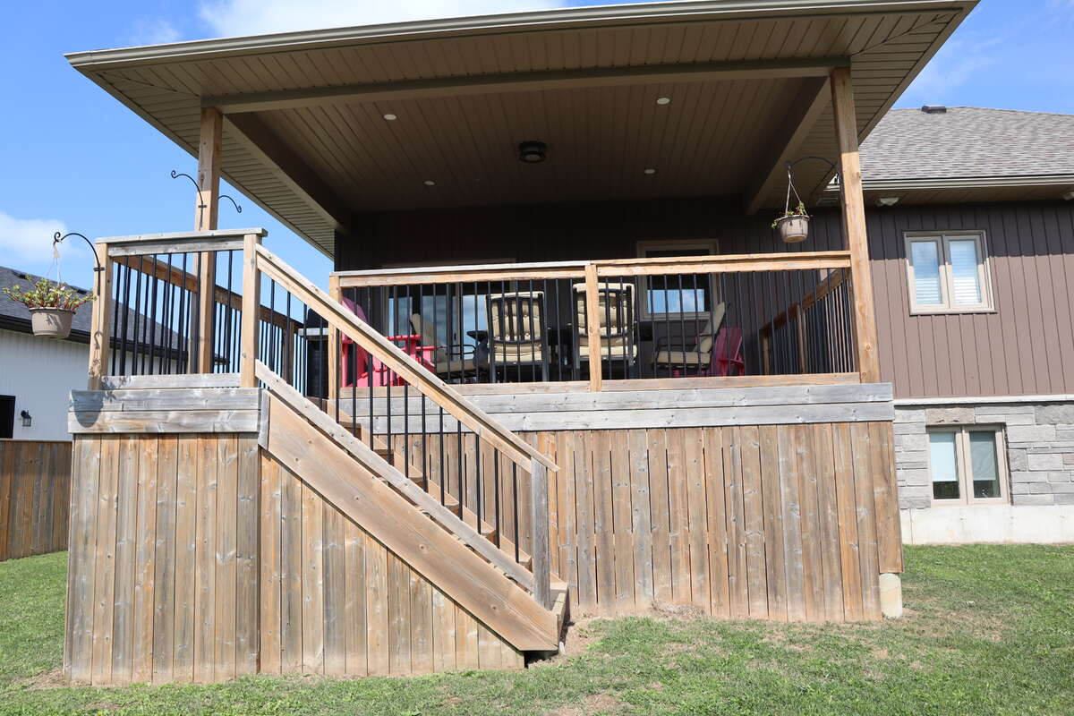 trees, quality 6 ft 6x6 fencing,and landscaping. Classic stone and vinyl exterior, extra large concrete 3 wide drive and walkway with front covered porch. Beautiful 18 X 12 ft covered raised porch off kitchen with nat gas BBQ hookup and storage underneath. High efficiency forced air gas furnace and air conditioning. Also has In floor gas heat in basement and in the insulated/finished two car garage, with truscore walls/ceiling and 2nd access to basement. All the closets in the house are professionally organized. Water softener, security cams, fridge, gas stove, washer dryer, air exchanger, blinds, and central vac are all included. Plenty of storage Approximately 2500 square feet finished. Quiet, friendly neighborhood with a nice mix of ages, and the walk through to the primary school and soccer field is only 3 houses away. Tara is a safe, quiet, and friendly oasis central to the southern Bruce Peninsula, ideal for families of all ages and stages, and close to conveniences. You will feel the comfort and quality immediately on viewing this well priced recent build.