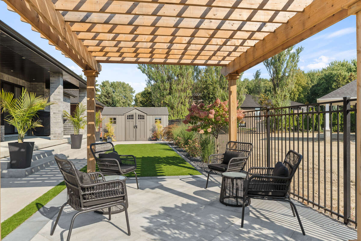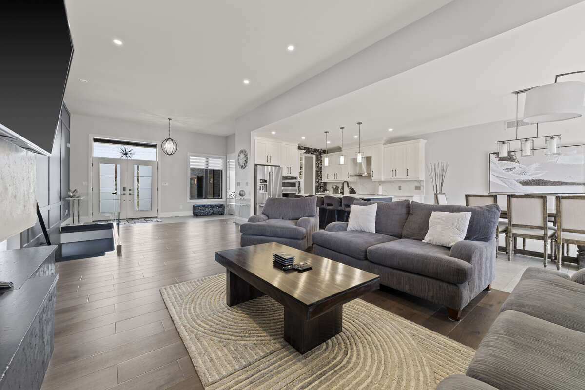 Look no further! This stunning 2,388 sq. ft. home, built in 2021, offers the perfect blend of modern design, comfort, and functionality. The main floor features a spacious open-concept kitchen and dining area, complete with a walk-in pantry, main-floor laundry, four bedrooms, and 2.5 bathrooms. Enjoy 9-foot ceilings throughout, with an impressive 11-foot ceiling in the living room, anchored by a beautiful three-sided glass fireplace - the perfect space to relax or entertain. Step outside to an expansive covered back porch and additional seating under the pergola, where you can unwind in your own fully landscaped backyard oasis. A full sprinkler system in both the front and back yards ensures low-maintenance, worry-free landscaping. The home also features a large 2.5 car garage and ample parking for family, friends, and recreational toys. The partially finished basement offers a fantastic opportunity to add your personal touches and create the space of your dreams. This home truly has it all and must be seen to be appreciated. Schedule your private showing today - all agents welcome!