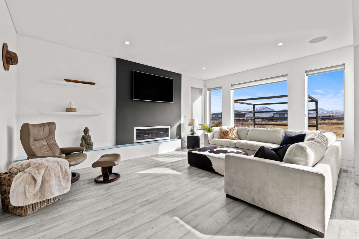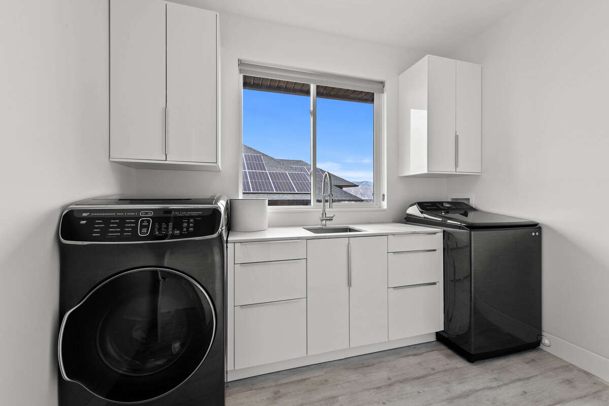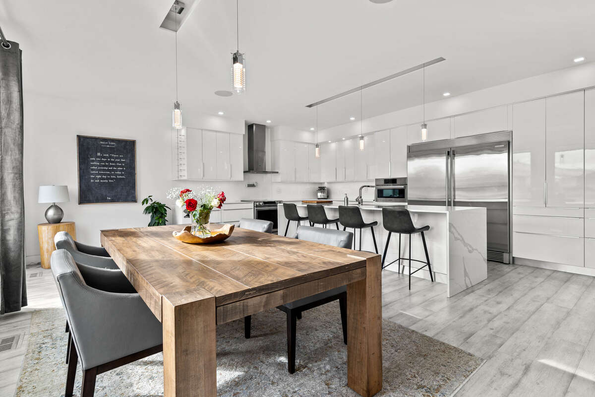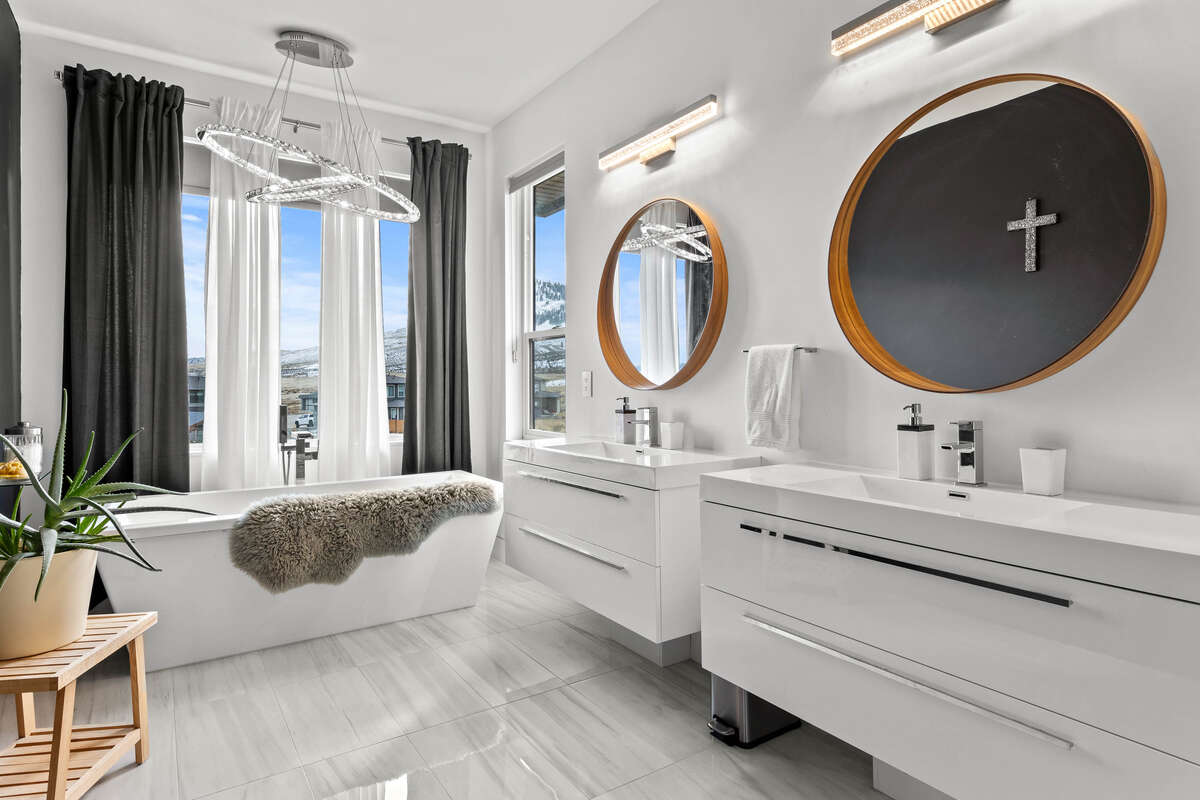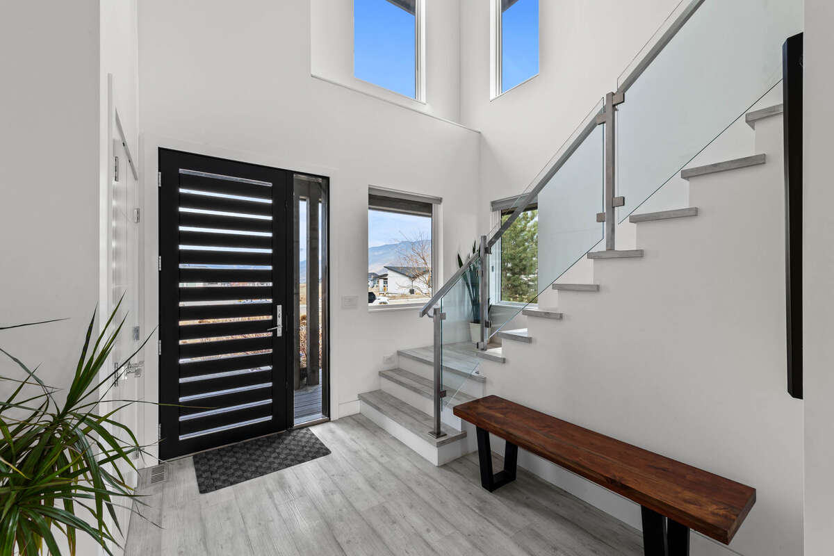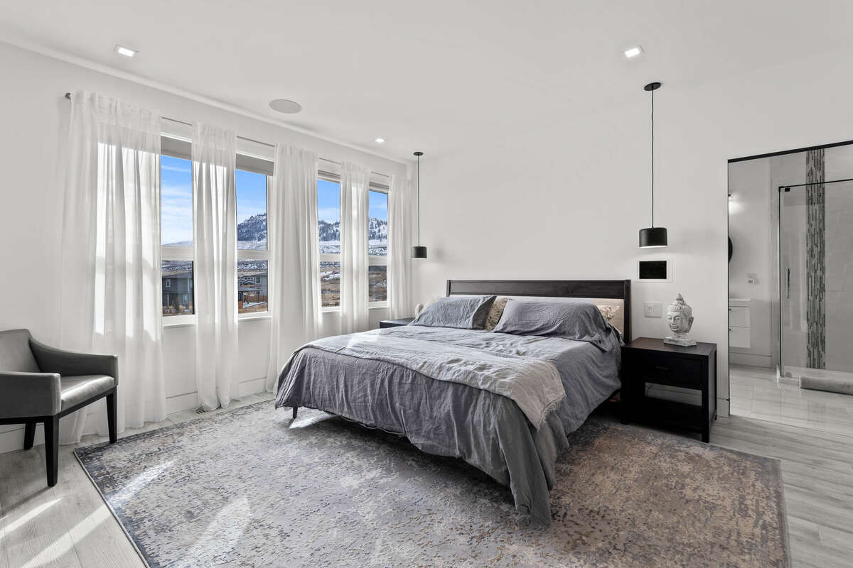 Experience modern elegance and SUPERIOR CRAFTSMANSHIP in this CUSTOM BUILT home by Absolute Home Builders, located in the prestigious master-planned community of TOBIANO. Offering over 3,900 square feet of exquisite design, this home features premium upgrades, breathtaking panoramic views, and seamless INDOOR - OUTDOOR LIVING. The OPEN CONCEPT layout is filled with AMPLE NATURAL LIGHT, featuring an expansive great room with a gas fireplace and floor-to-ceiling windows. The gourmet CHEF'S KITCHEN includes GRANITE waterfall countertops, a BOSCH dishwasher, a DOUBLE Electrolux fridge/freezer, a built-in CONVECTION oven, a pot filler, and under-counter lighting. Sliding doors lead to a spacious deck, covered gazebo, seven-person HOT TUB, and private backyard oasis.