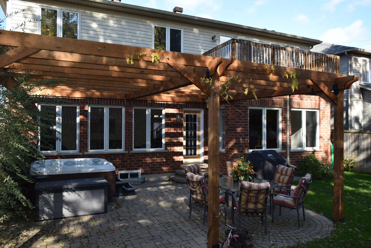 Enjoy outdoor living in the private, fully-fenced backyard made for memory-making. Enjoy summer barbecues on the generous patio, relax under the oversized pergola, or unwind in the hot tub while the kids play. Mature landscaping surrounds the yard, creating a safe and peaceful setting.
