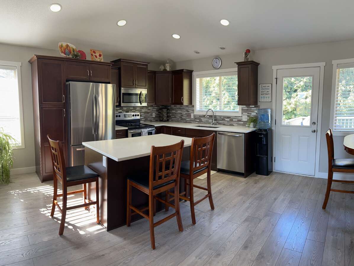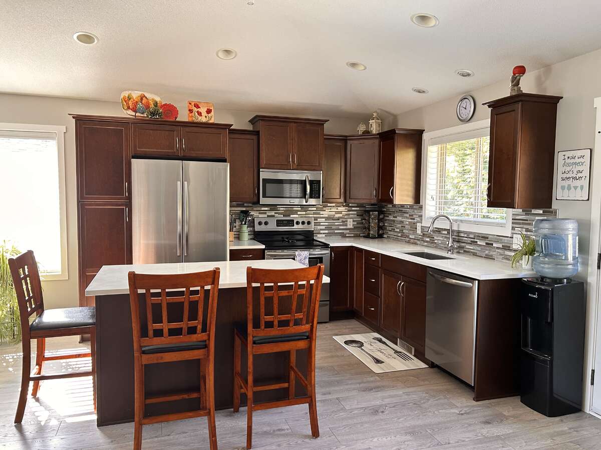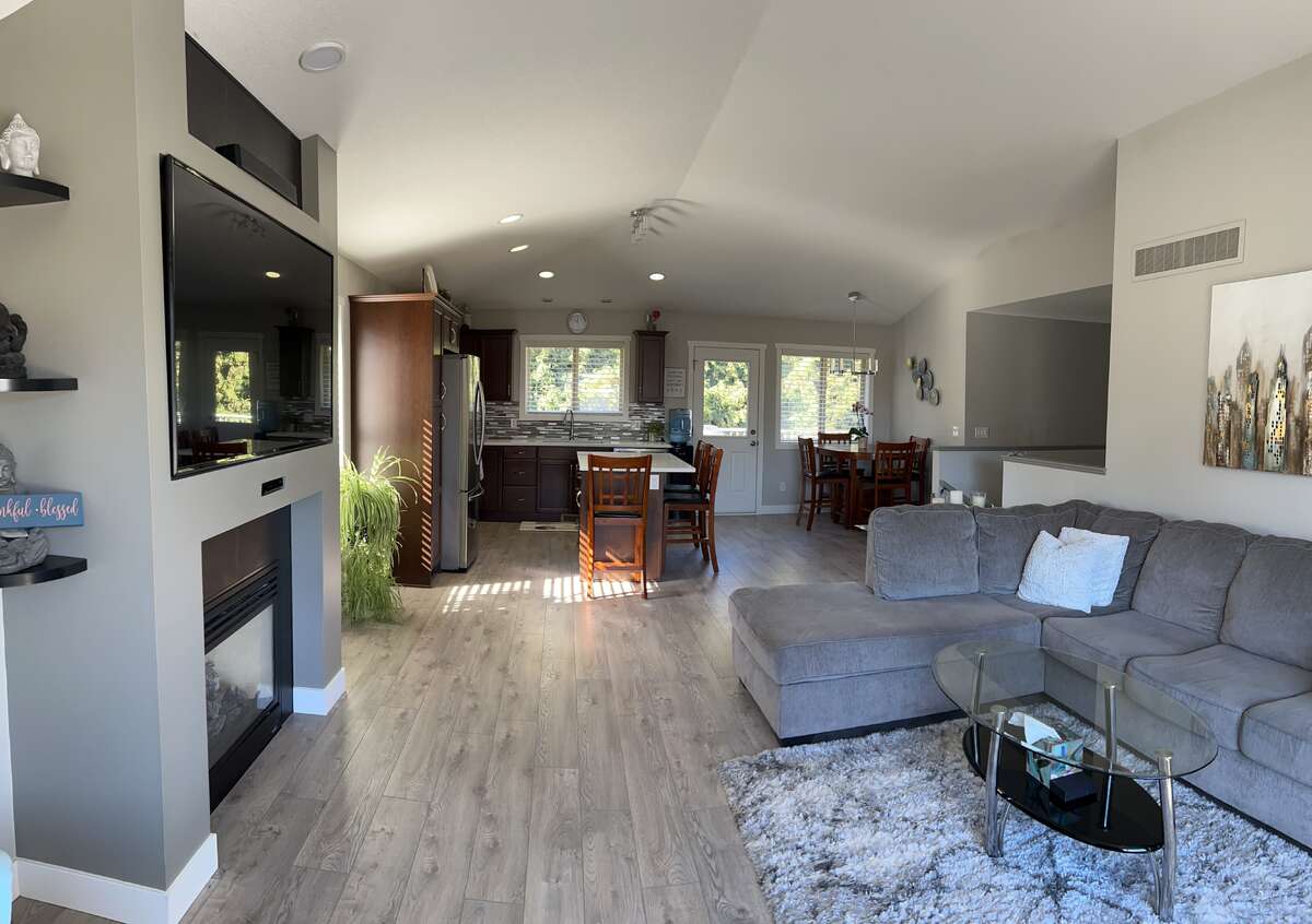 Nestled in the highly desirable Shannon Lake community, this beautifully updated 6 bedroom, 3 bathroom home offers the perfect blend of comfort, style and versatility. The main living area showcases 10-foot vaulted ceilings, a warm gas fireplace and an airy open-concept design flooded with natural light. Thoughtfully designed for both comfort and function, the upper level features 2 bathrooms and 3 bedrooms - each bedroom with its own walk-in closet. Downstairs offers a 4th bedroom with a 2 bedroom, 1 bathroom suite with a private entrance which offers ideal flexibility for extended family or a desirable mortgage helper. The suite showcases a brand new kitchen with modern finishes and new appliances. Extensive upgrades and features throughout include: stylish flooring, paint and baseboards, updated window and door casings, quartz countertops, contemporary lighting, under mount sinks, faucets, new composite deck stairs leading to the backyard and a newer 90 gallon hot water tank, built in vacuum, a/c and a double car garage. Step outside to a fully fenced backyard with mature landscaping - perfect for relaxing, entertaining or enjoying peaceful Okanagan evenings. Ideally located within walking distance to schools, parks, hiking trails and just minutes from shopping, dining, golf and everyday amenities. All this, less than 15 minutes to downtown Kelowna. A rare opportunity to own a turnkey home in one of West Kelowna’s most sought after neighborhoods.