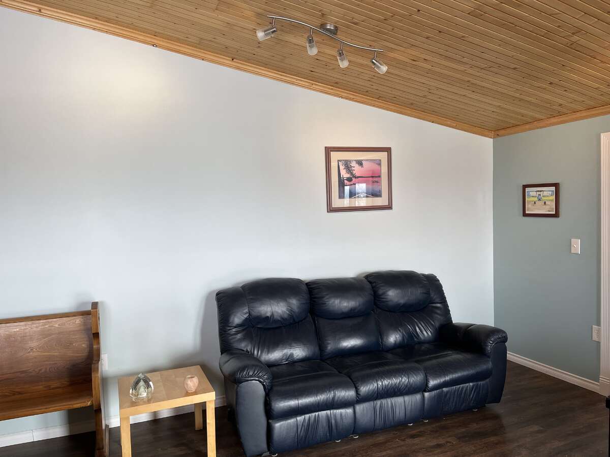 • No well to maintain, on city water • Ground level has 10’ walls, three mechanical rooms, 1/2 bathroom roughed for full bath, stair case with under stairs storage. Remaining 650 sqft. ground level area finished and painted, ready for possible bedrooms. •Upper level has 11’ pine vaulted ceiling, kitchen with island, dining and living area all open concept. Full bathroom, laundry, three bedrooms, walk in closet off primary suite. Garden doors lead off the living room onto a 12’ X 16’ elevated deck.