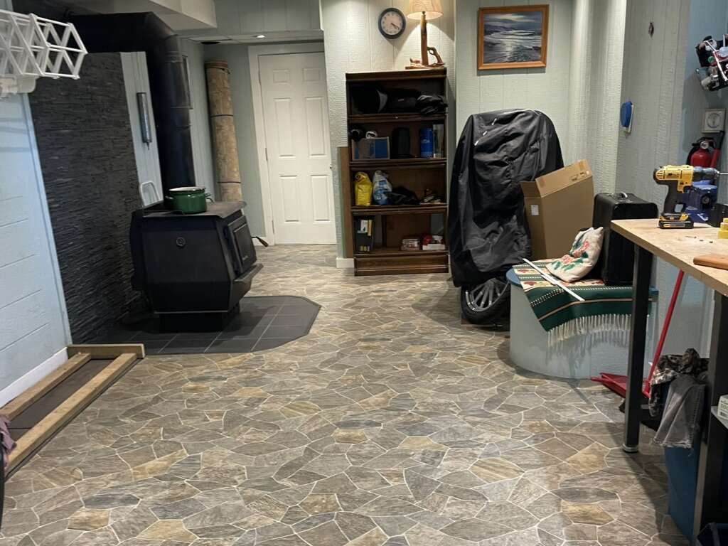Certified Blaze King wood stove in the Basement, with the option of going to a Gas stove. Cold storage in the very back of the basement. Spray foam insulation throughout. Sub floors, with vinyl flooring. Heated bathroom floor. Has the potential of having another bedroom. Spiral staircase to upper floor. Great work space. 100 amp Electrical panel.