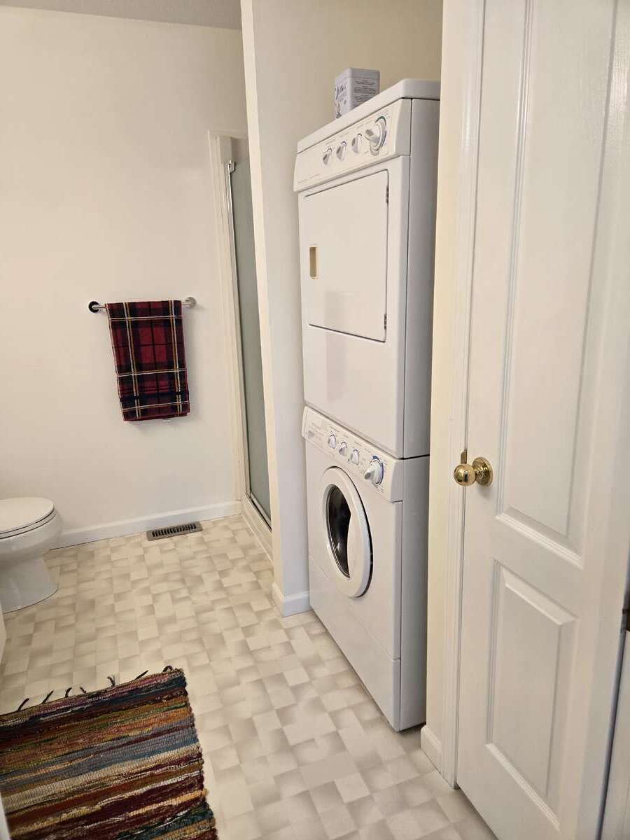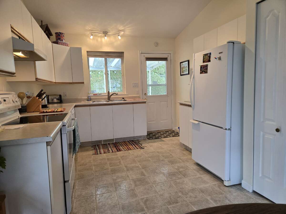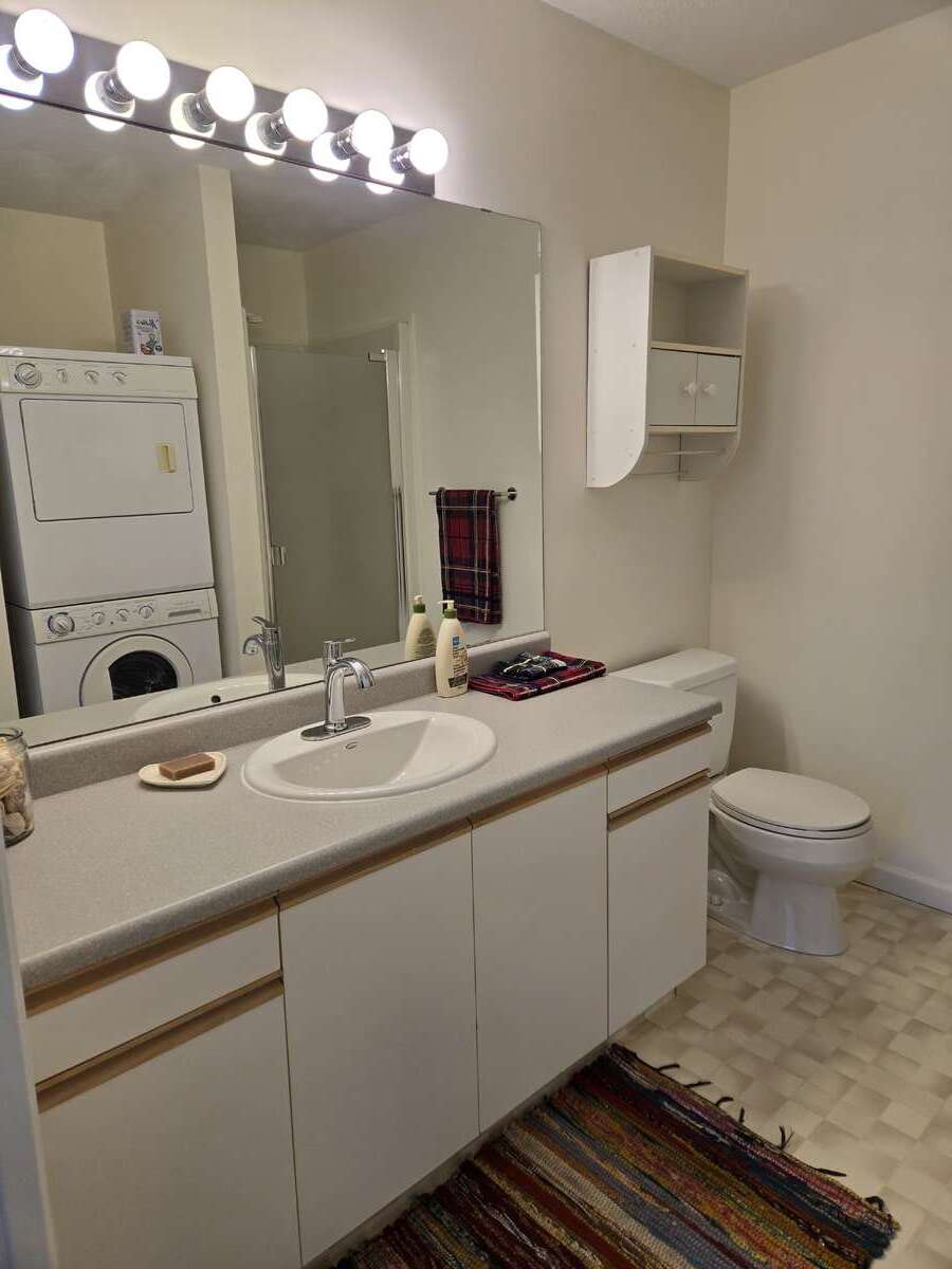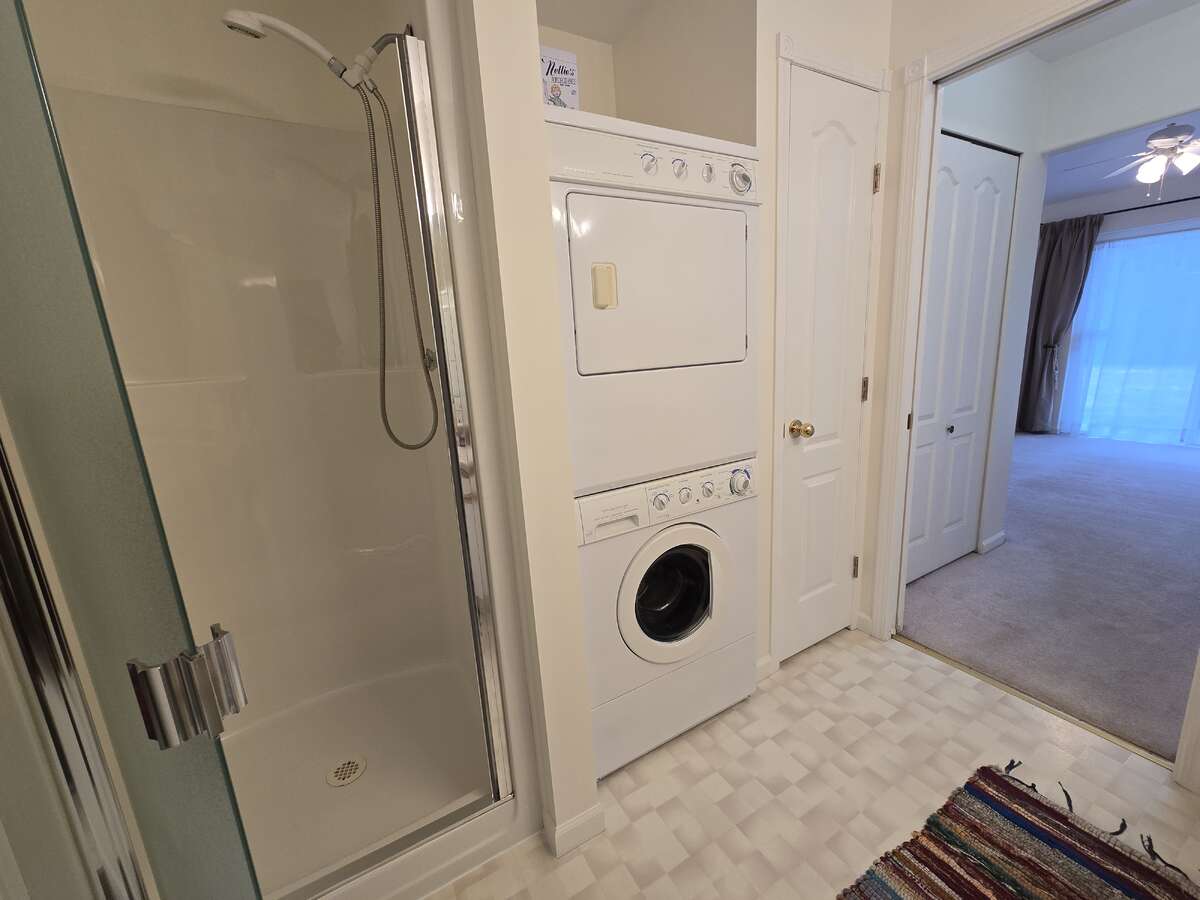Welcome to Tiffany Lane, a desirable 55+ strata community. This open plan 1010 sq. ft. semi-detached home offers 2 bedrooms and 2 bathrooms in a peaceful, well-maintained setting. The bright and inviting living room features an 11 ft vaulted ceiling along with large west-facing windows, filling the space with natural light. Designed with comfort and ease of movement in mind, this level-entry home offers a practical layout ideal for everyday living. The kitchen provides ample counter and cupboard space, while the primary bedroom includes a 3-piece ensuite, in-suite laundry, and generous closet storage.