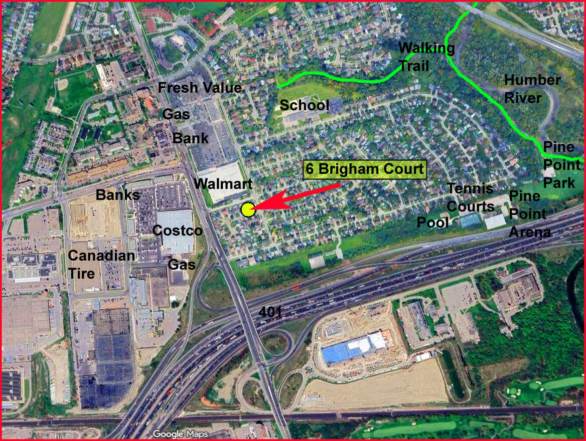 Only 5 minutes to Costco, Walmart, Fresh Value supermarket, Canadian Tire, major banks, highways 401 & 400, nearby schools, parks, walking trails, pool, tennis courts, hockey arena and TTC bus routes. All walking distance
