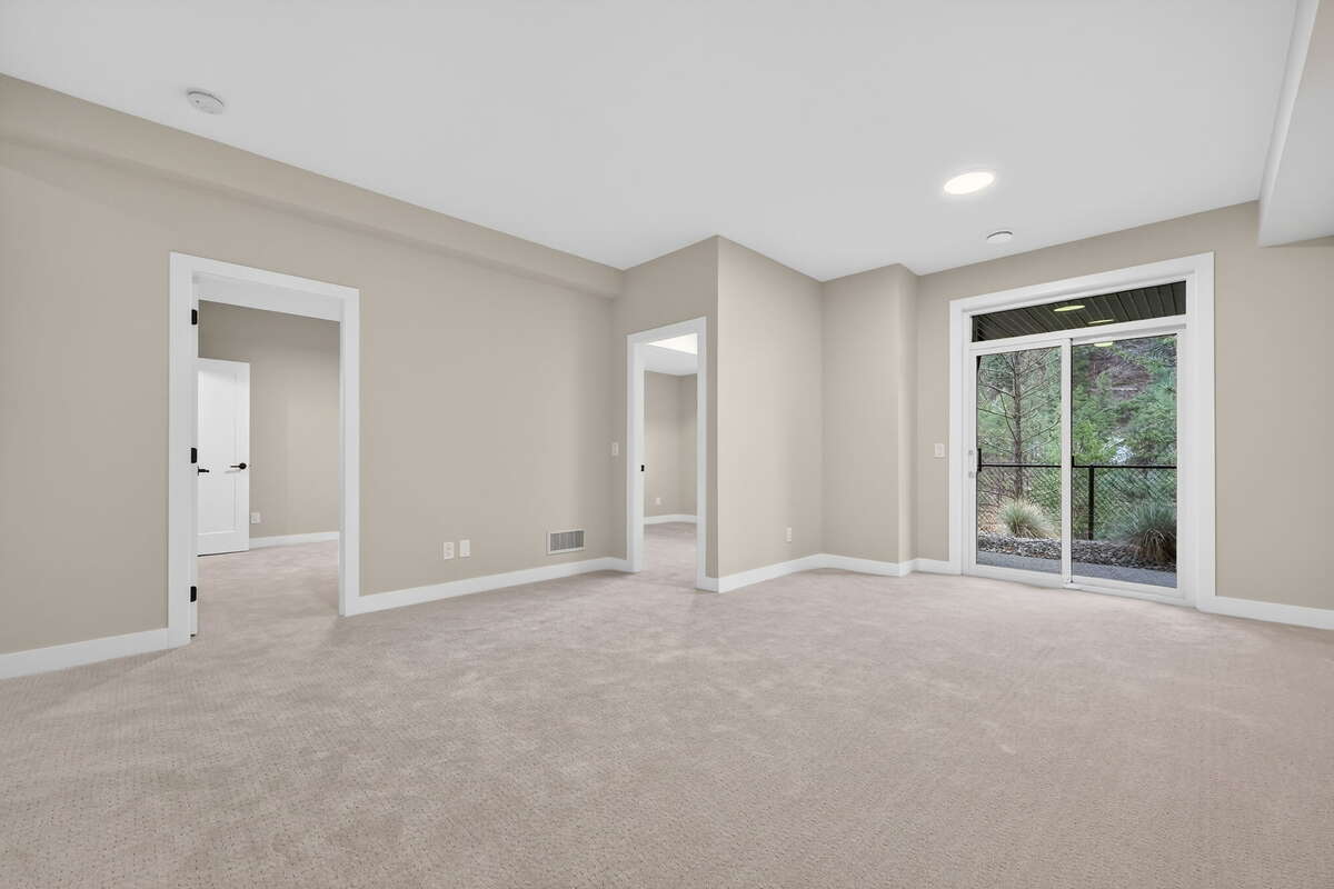 The main floor showcases an open living area with a gas fireplace, while the lower level includes two bright bedrooms and a family room opening to the patio. A side-by-side double garage connects conveniently to a well-designed laundry room. Ceiling heights range from 9' in the basement, 10' on the main floor, 8' in the upper bedroom, and up to 11' in the study, enhancing the home’s sense of openness and light.