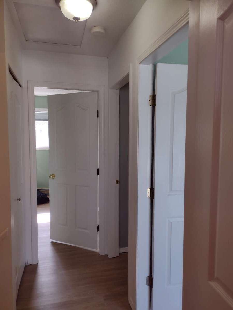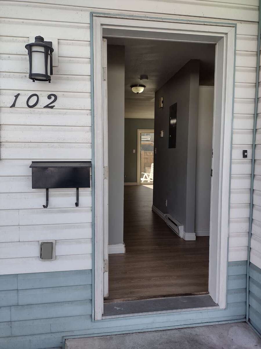 Well cared for 3-bedroom 1.5-bathroom townhome. Solid built 2” x 6” construction. Premium JELD-WEN vinyl double pane windows and sliding patio doors (living room & master bedroom). New modern vinyl flooring throughout 1st and 2nd floors, including stairs. Generous sized bedrooms with fresh neutral paint, 2nd floor balcony off master bdrm. Both bathrooms have matching easy to clean tile. Full size 5 appliances includes dishwasher. Laundry conveniently located on main level. Full size 4½ ft cement floor crawl space. Not on least land, 2 parking spaces. Strata fee $299/ month, includes water, sewage, garbage, front lawn maintenance, snow removal, common elements (roof, windows, balcony, siding etc). Family friendly safe location. Pet friendly. Next to golf course & SOCEC sports complex, elementary school. Shows extremely well.