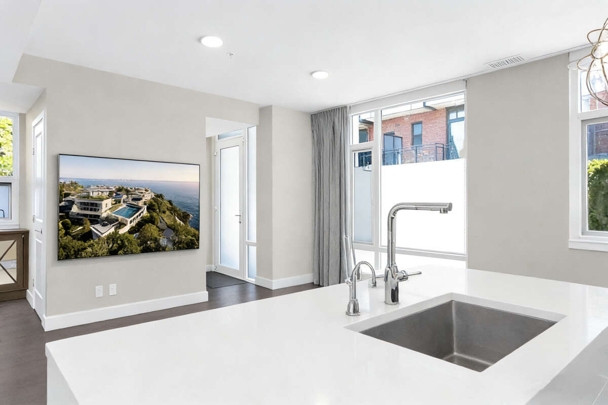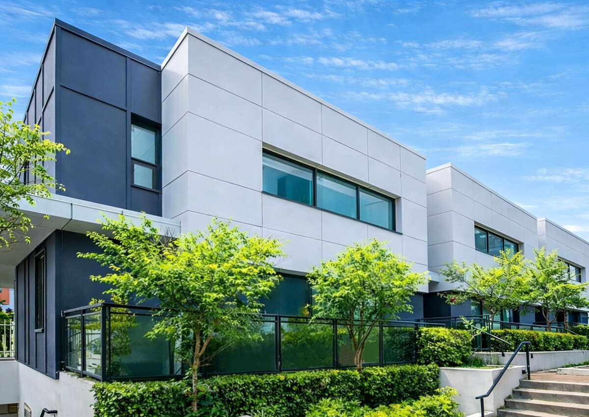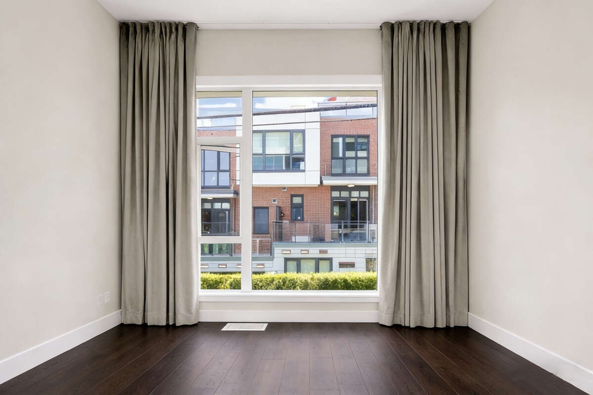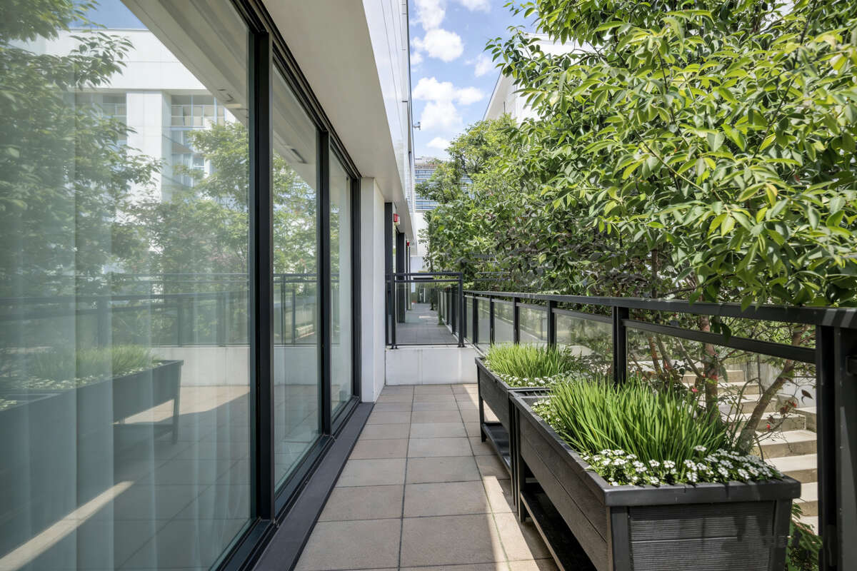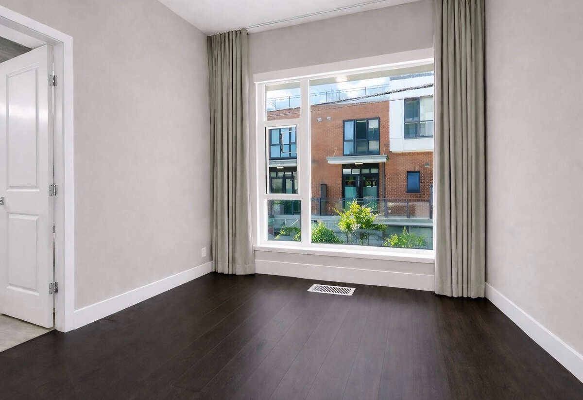 This modern 2-level concrete corner townhouse features an end-unit layout with no immediate neighbouring unit on one side, offering enhanced privacy and abundant natural light through side-facing windows—a rare combination of quiet living and urban convenience. The home also includes a large private patio and courtyard, ideal for outdoor living and entertaining.