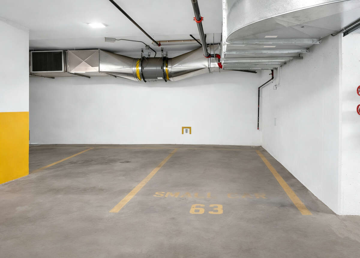 Exceptional parking and storage include loading parking at the front door, two parking spaces (one gated private garage and one assigned stall), and a large storage locker. LEED Gold–certified building.