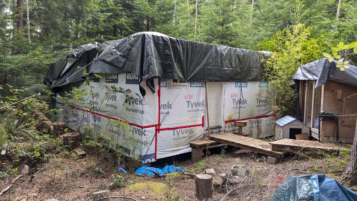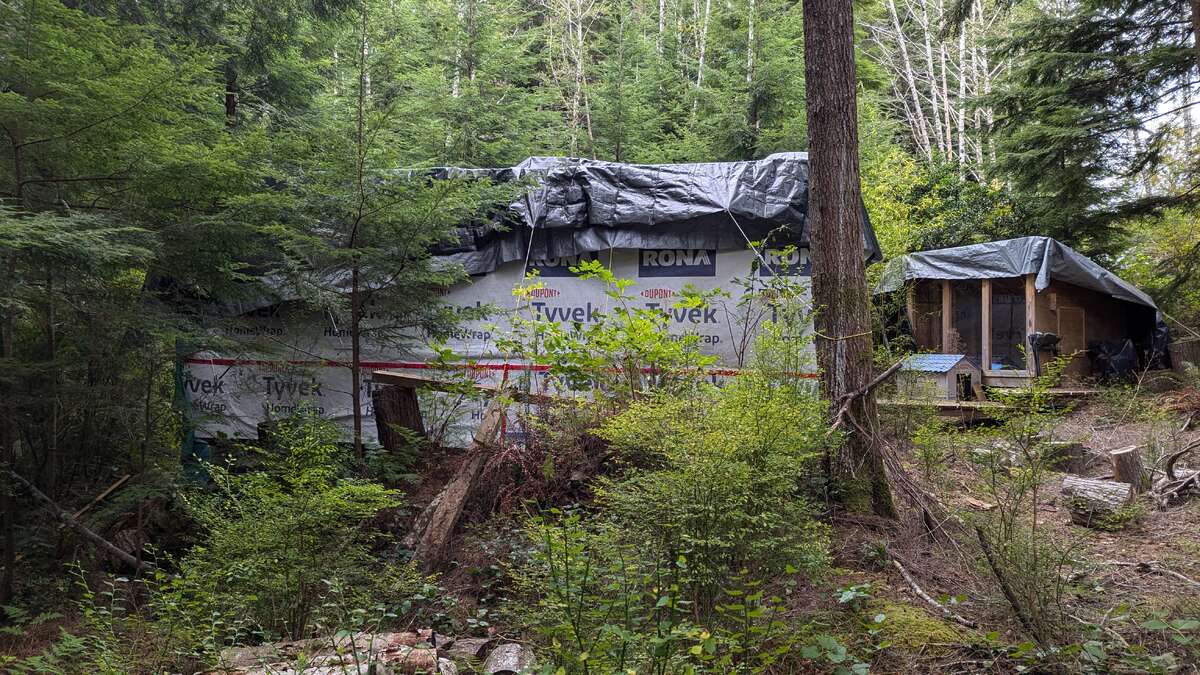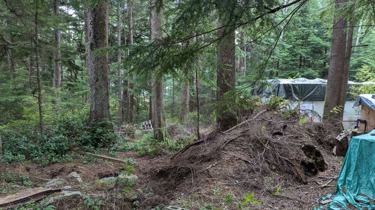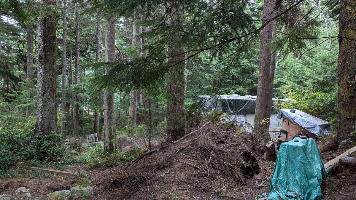 Wooded lot with partially constructed 900 sq. ft. cottage in Alert Bay. The lot is 123 x 77 ft.