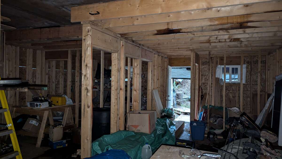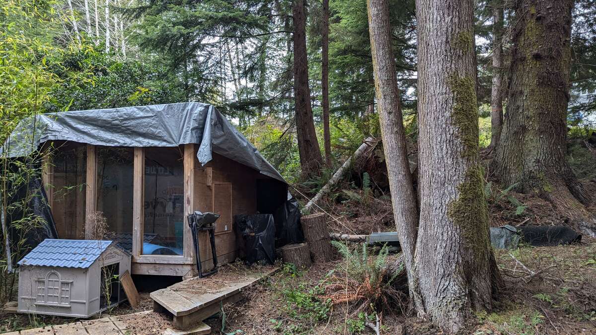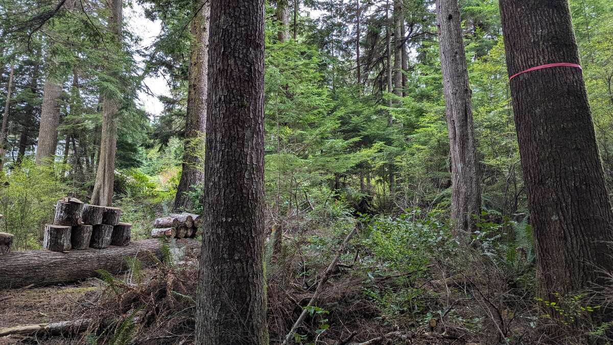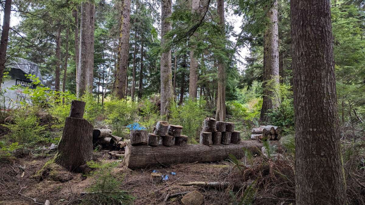Wooded lot with partially constructed 900 sq. ft. cottage in Alert Bay. The lot is 123 x 77 ft.