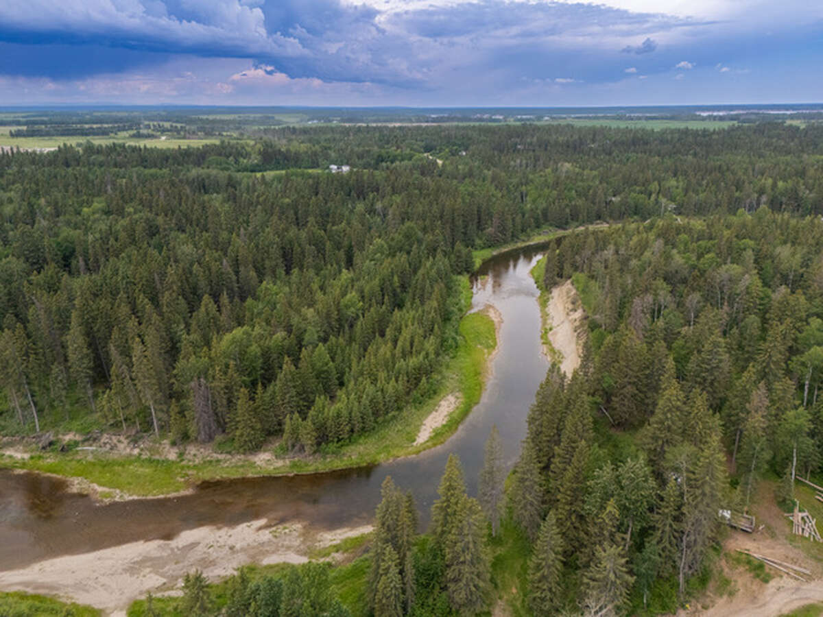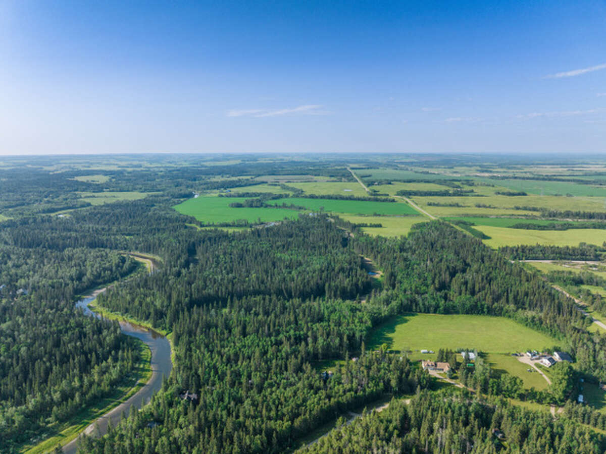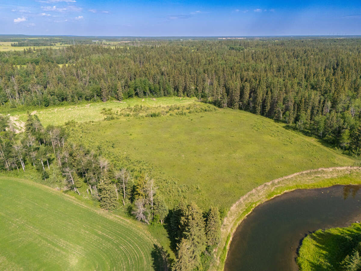 Rare Development or Recreation opportunity! First time on the market in 45 years! Beautiful, pristine quarter section has extensive recreational amenity with a diverse ecosystem and natural environment. This property has it all—ten acres of river front (4500 ft of frontage), spruce forests, level fertile fields, rolling hills, a large marsh, and roads and pathways throughout. A small family campground sits on the southwest side of the centrally located oxbow lagoon, which acts as a natural spillway for the Little Red Deer River. The river separates a 12-15 acre high bank potential building site in the NE corner (a natural subdivision) accessed through Red Lodge Estates via RR24. The main parcel is accessed from RR25, with potential for many acreages or building sites in the forested and field areas throughout. Three fertile level fields - 5+ acres each - grace this spectacular property. A rare opportunity to hold land with so much potential for a wide range of applications.