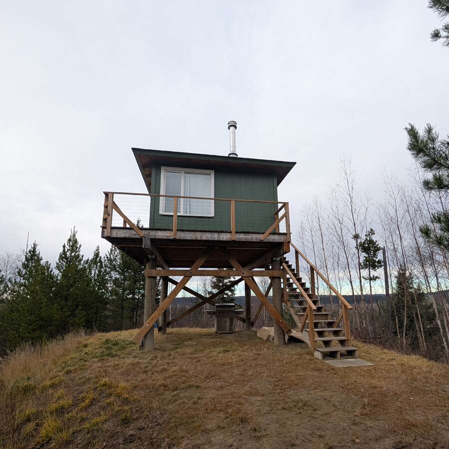 A new 140sqft FIRE LOOKOUT TOWER, with a wood stove, offers a cozy retreat and sweeping sunset views. Additional structures include a small storage shed and outhouse. The building site is cleared and well drilled, and electricity, natural gas, and phone services are conveniently located at the lot line, making it ideal for building your dream home.