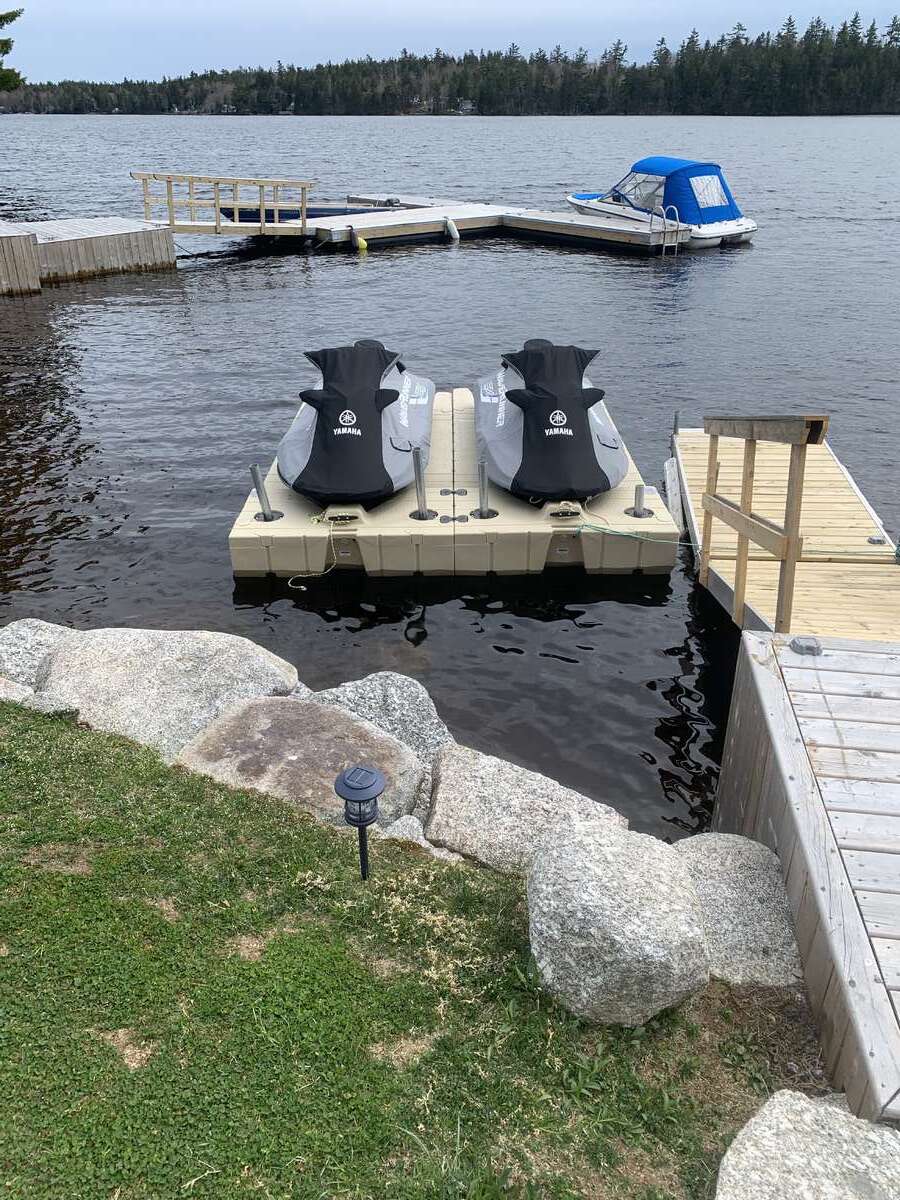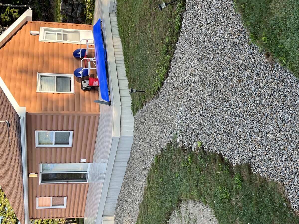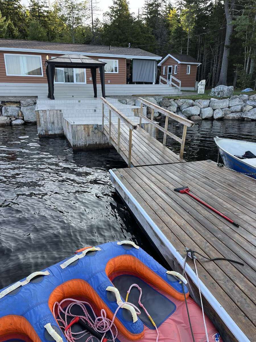 Boat House: Custom aluminum roller ramp (currently used for two jet skis and water sport gear), doubles as a social space in summer—perfect for darts or relaxing while watching pontoon boats glide by