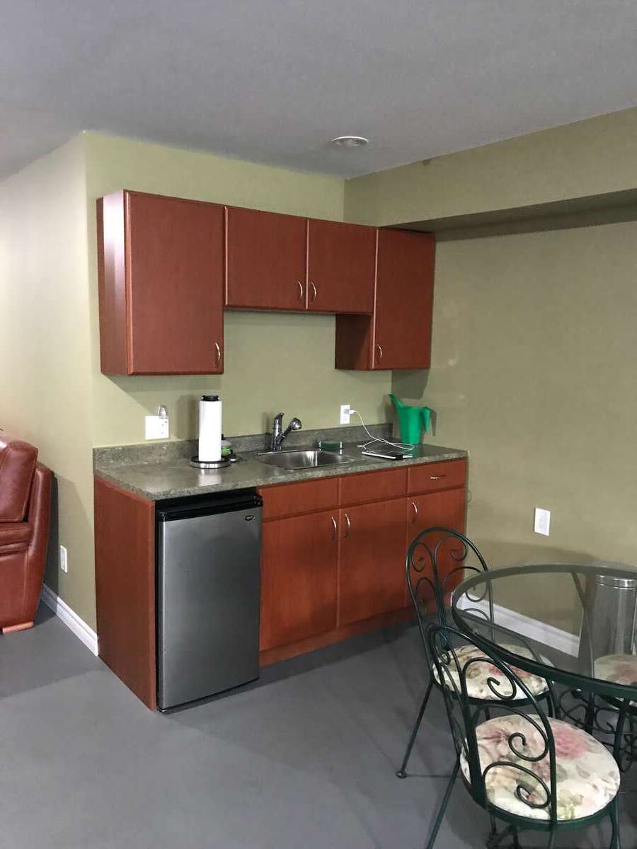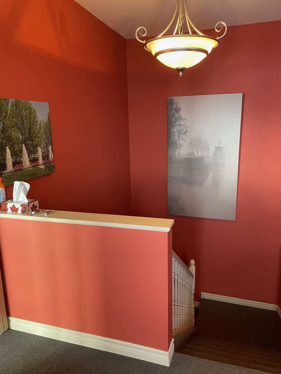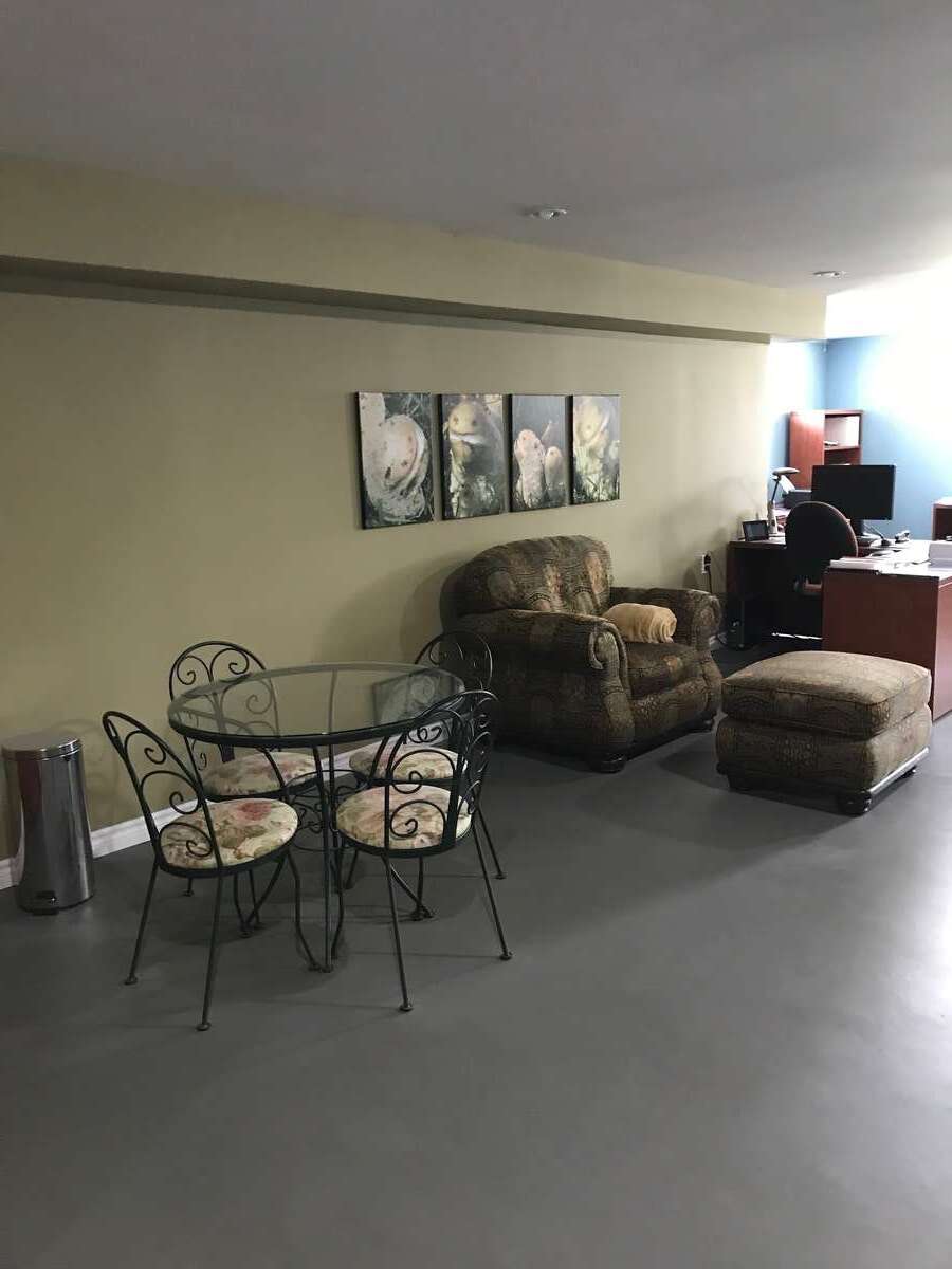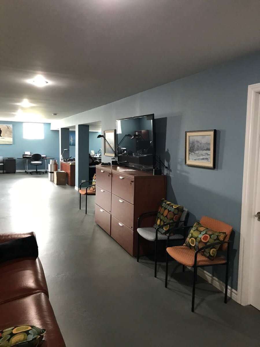 The eight-foot tall, finished basement with its own entrance, noise-insulated ceiling and in-floor heating, offers a completely furnished 2,000 square-foot home office comprised of four workstations, a conference area, kitchenette, washroom, closet and storage area.