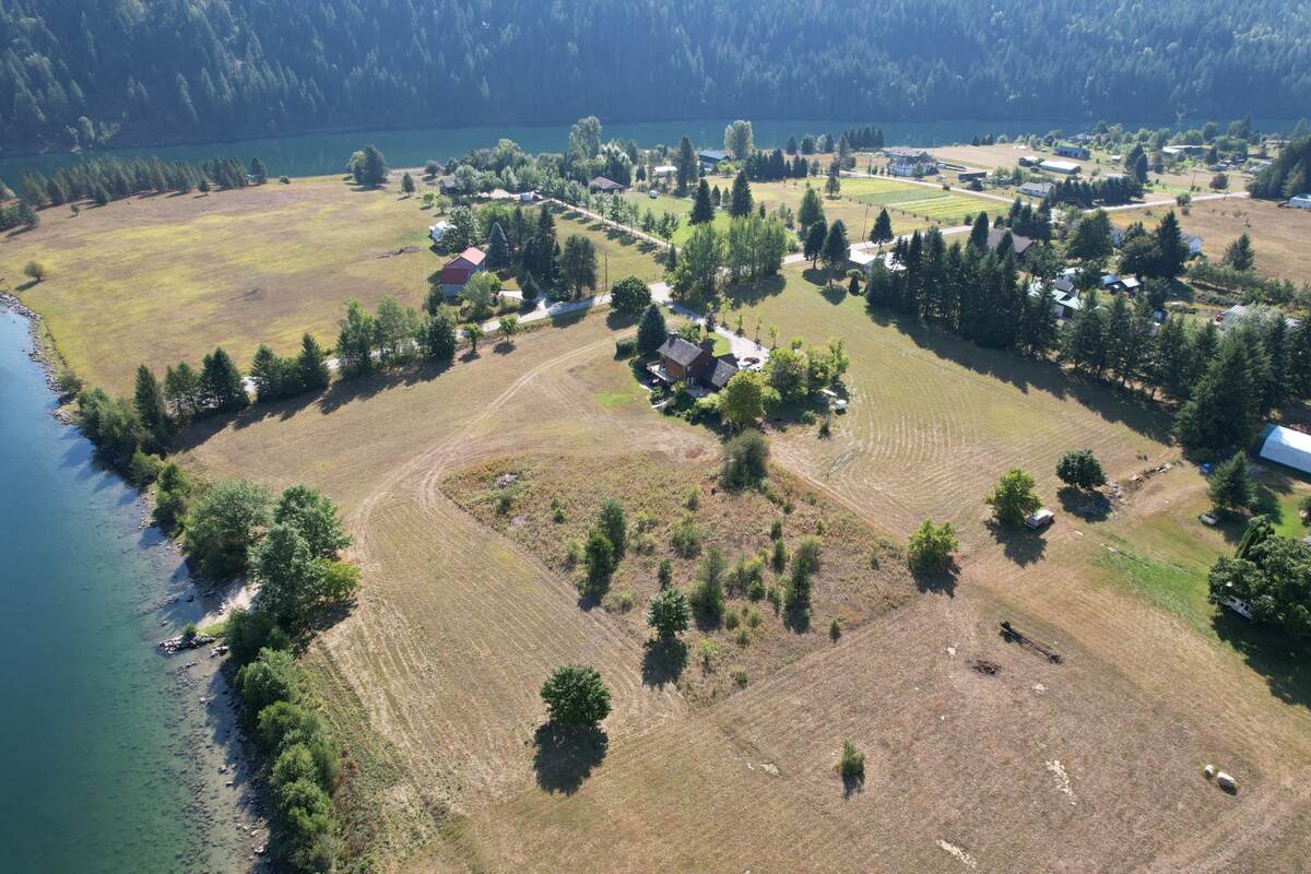 Located in a quiet rural community with quick access to Nelson, Castlegar, and the Slocan Valley, the property is close to both amenities (schools, banking, shopping, airport) and a multitude of outdoor activities. The terrain is predominantly level, with a gentle slope down to the water’s edge. Its expansive size and favourable zoning present opportunities for development, such as agriculture, raising livestock, erecting additional structures (like shops, sheds, barns, or a manufactured home), or subdividing. Services include two wells, a septic system, and connections to gas, electricity, cable, and high-speed internet services.