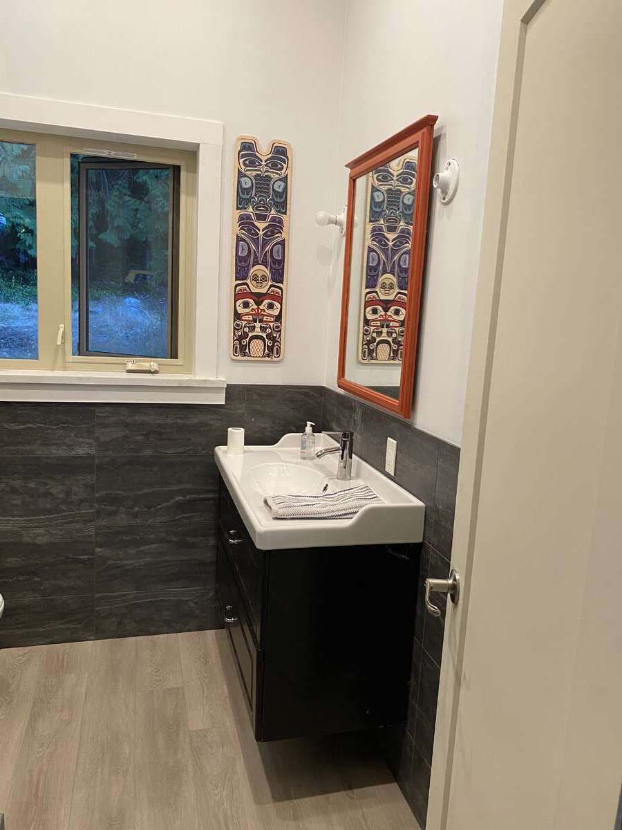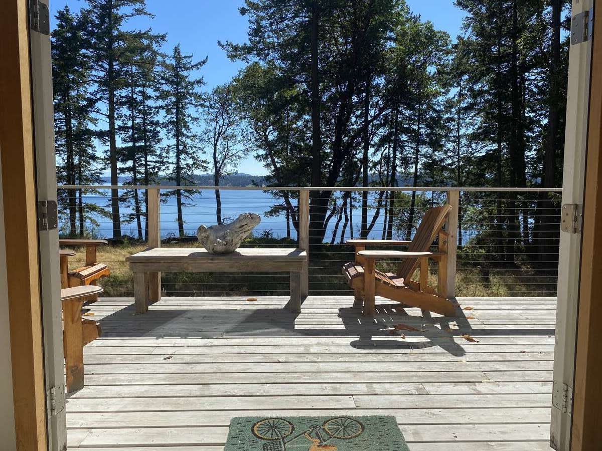 The cottage is aligned on a south-west orientation on a site selected for morning sun and evening sunsets. Located approximately 30 feet above 4 miles of sandy beach and tidal flat.